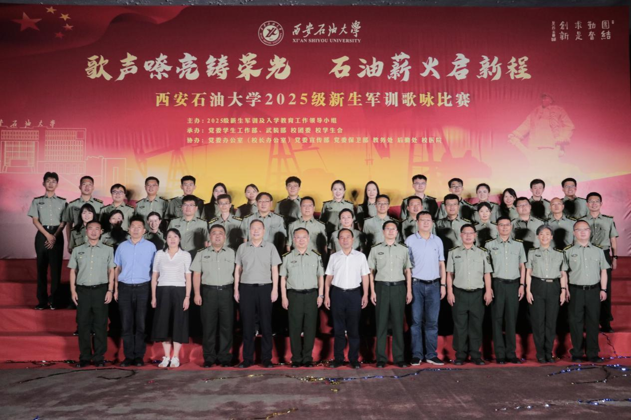 9月15日晚,我校“歌聲嘹亮鑄榮光,石油薪火啟新程”2025級新生軍訓歌詠比賽在鄠邑校區西田徑場舉行,學校軍訓工作領導小組組長、副校長種宇宏,中國人民解放軍某部隊武少杰中校出席活動。學校黨委辦公室(校長辦公室)、黨委宣傳部、黨委學生工作部、黨委保衛部、團委、教務處、后勤處、校醫院等軍訓工作領導小組成員單位負責人擔任評委,各院(系)主管學生工作負責人,全體參訓教官、學工干部和2025級新生觀看了比賽。