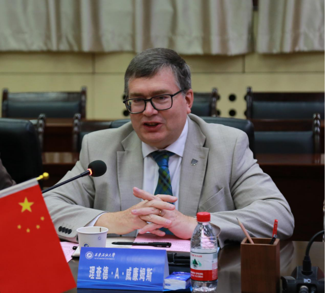 理查德?A?威廉姆斯對我校的熱情接待表示感謝,并簡要介紹了赫瑞-瓦特大學的學科特色、國際校區布局及全球合作成果。他表示,推進跨文化教育合作、培育應對全球挑戰的復合型人才是兩校的共同追求,赫瑞-瓦特大學高度重視與學校的合作。他強調,愿與學校共同細化3+1項目執行方案,推動項目早日落成,并期待雙方在能源、人工智能、基礎設施建設等領域加強跨學科科研合作,擴大師生互訪規模等方面開展實質性合作。