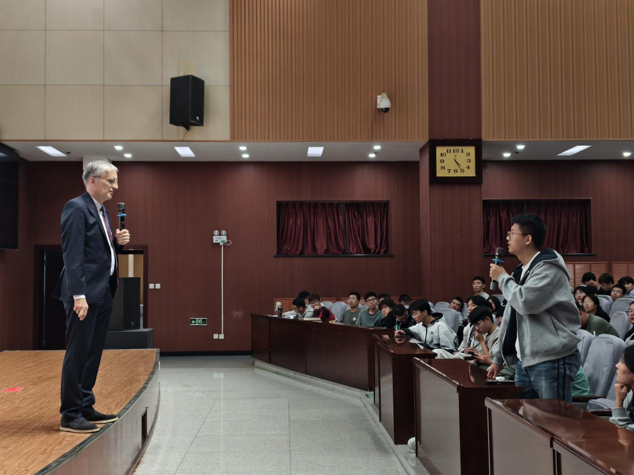 在最后的提問環節,現場氣氛熱烈非凡。師生圍繞AI決策偏差防控、信息過載應對、AI與人類決策邊界等問題踴躍發言。舍恩伯格教授通過分享個人研究經歷,詳細耐心地解答了師生的疑問。