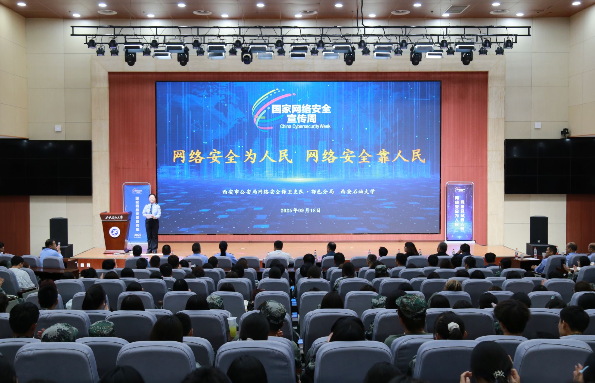 9月18日下午,由西安市公安局鄠邑分局主辦的“國家網絡安全宣傳周”暨“警校共治”宣傳活動在我校鄠邑校區弘石學術報告廳舉行。
