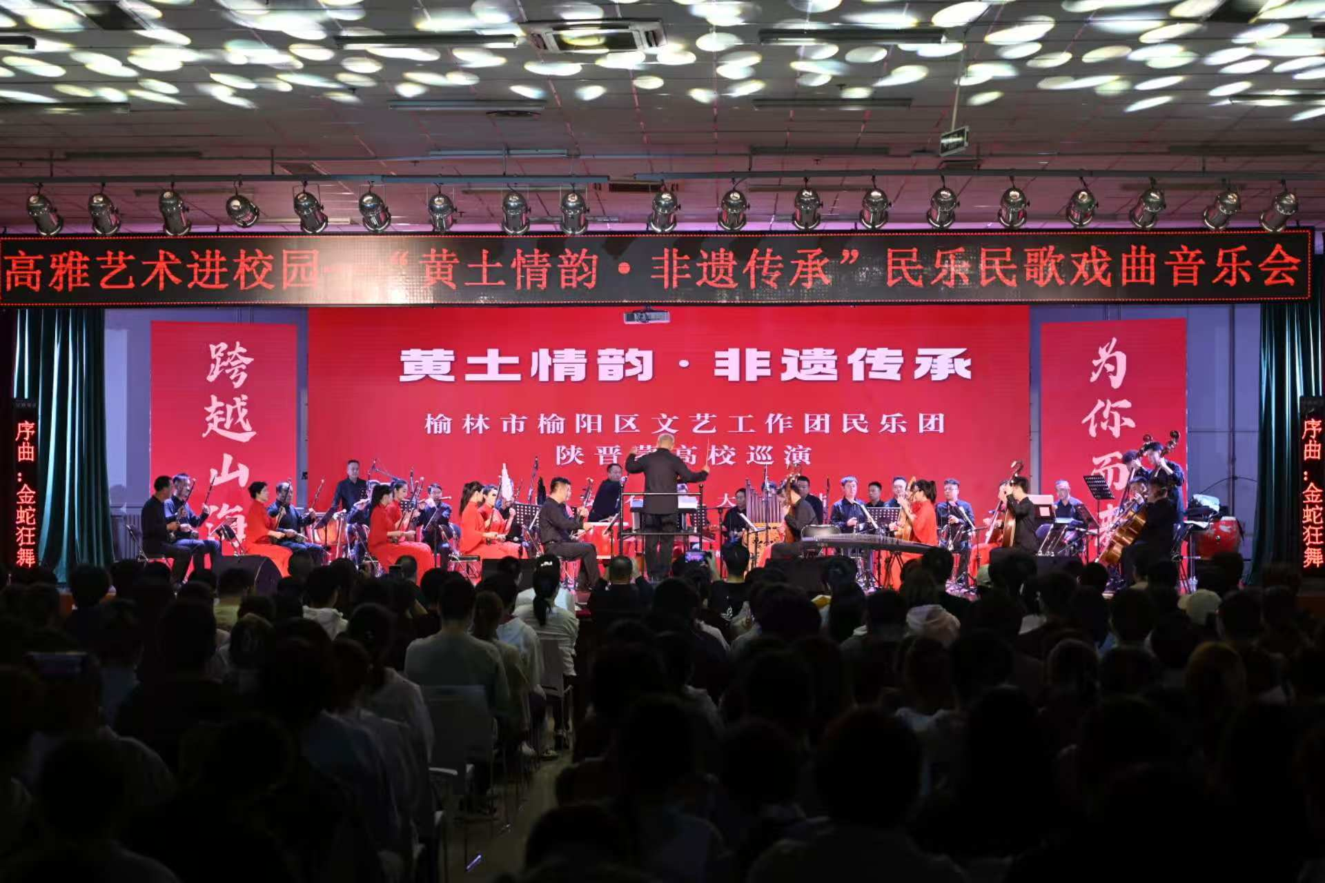 音樂會現場,陜北嗩吶高亢激昂、板胡婉轉纏綿,一首首質樸深情的民歌、一段段韻味悠長的戲曲輪番上演,引來陣陣掌聲。整場演出不僅是一場視聽盛宴,更搭建了非遺文化與青年對話的橋梁,使傳統藝術在校園賡續傳承,煥發時代光彩。