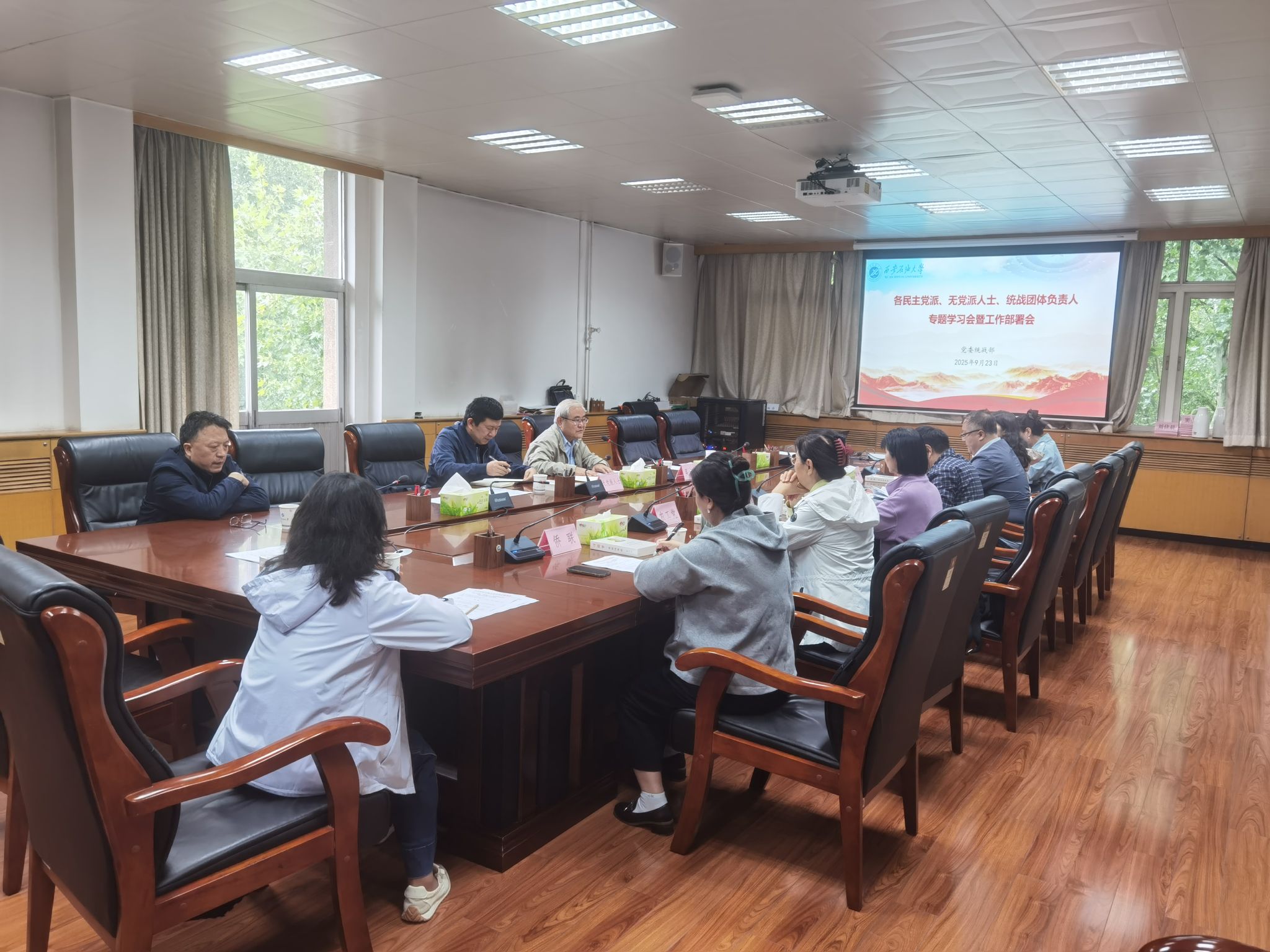 為進一步加強政治理論學習,持續推進各民主黨派、無黨派人士“學規定、強作風、樹形象”主題教育,安排部署本學期重點工作,學校于9月23日上午在雁塔校區行政樓五樓會議室召開各民主黨派、無黨派人士、統戰團體負責人專題學習會暨工作部署會,各民主黨派支部委員,無黨派人士負責人,僑聯、留聯會、知聯會負責人參加。會議由黨委統戰部部長吳復雷主持。