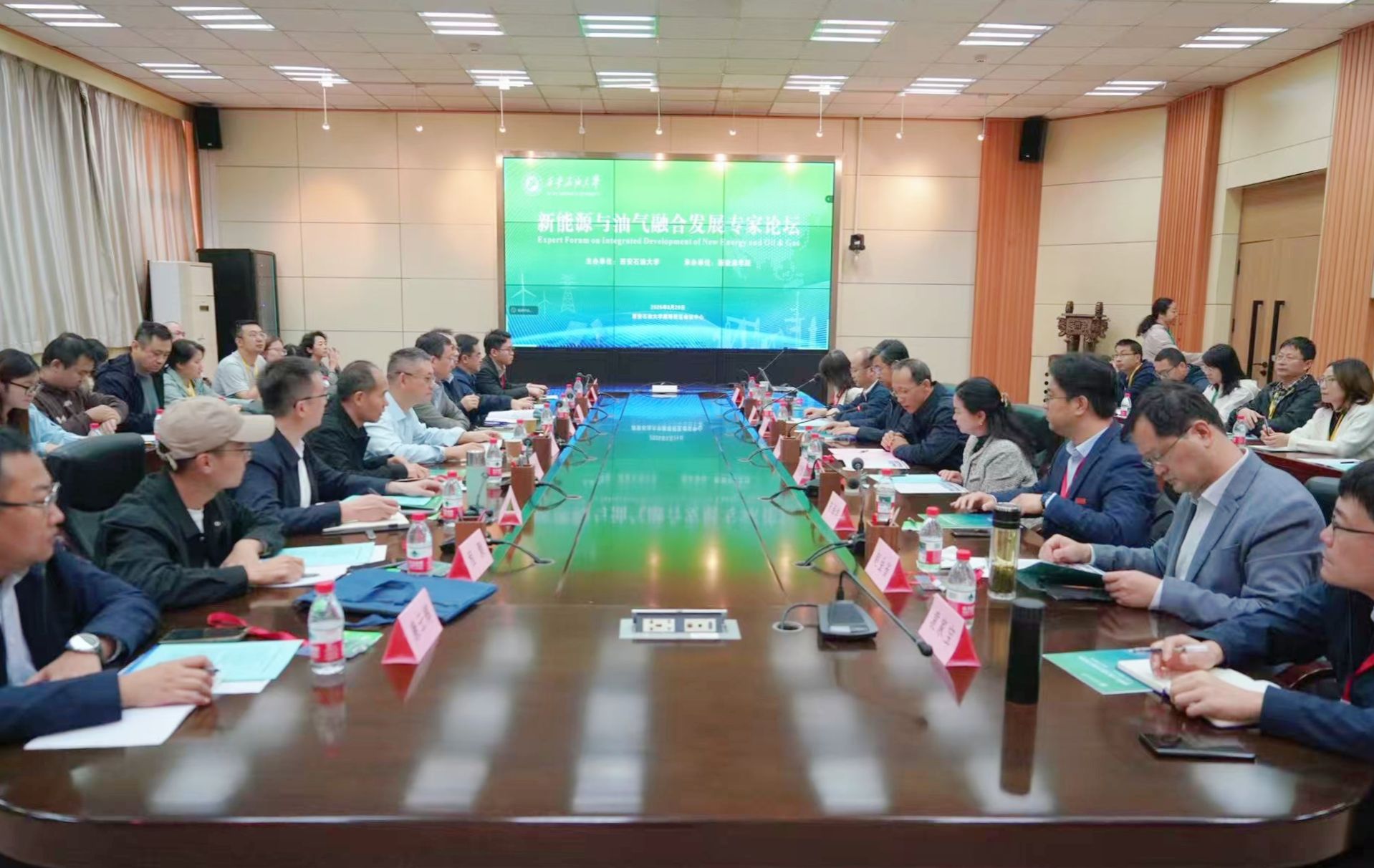 9月29日,第一屆新能源與油氣融合發展專家論壇在我校雁塔校區會議中心第二會議室成功召開。此次論壇由西安石油大學主辦,我校新能源學院具體承辦,旨在匯聚行業智慧,共商新能源與油氣融合發展大計。眾多企業新能源領域的專家學者出席了此次論壇,包括新疆油田分公司、勝利油田分公司、長慶油田分公司、中石油工程材料研究院、玉門油田分公司、吉林油田分公司、中國石化新星新源公司、隆基綠能股份有限公司、東方電氣集團等。學校黨委教師工作部、科研處、研究生院、新能源學院、碳中和未來技術研究院負責人,新能源學院與電子工程學院師生代表參加會議。校長王進富出席論壇,開幕式由副校長張君濤主持。