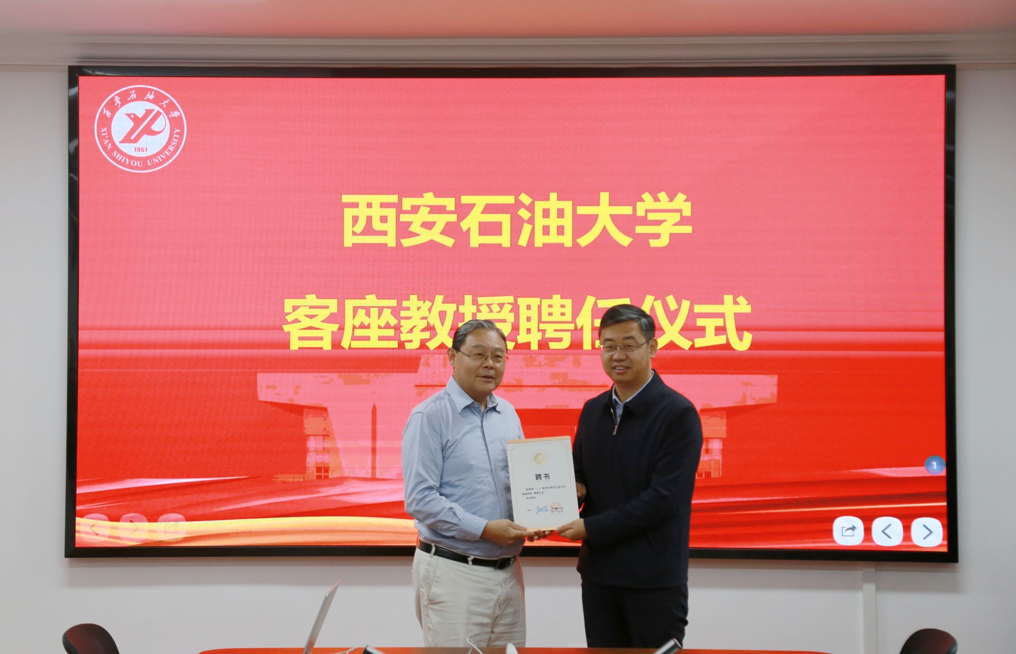 聘任儀式前,校長王進富在鄠邑校區貴賓室與鄒進教授進行了親切會談,對鄒教授的到來表示誠摯歡迎,并就學校紅色基因與石油精神傳承、校園文化建設、學科優化布局、人才隊伍建設等方面進行交流,期待鄒進教授能夠充分發揮專業優勢與學術國際影響力,提升學校學科發展水平。