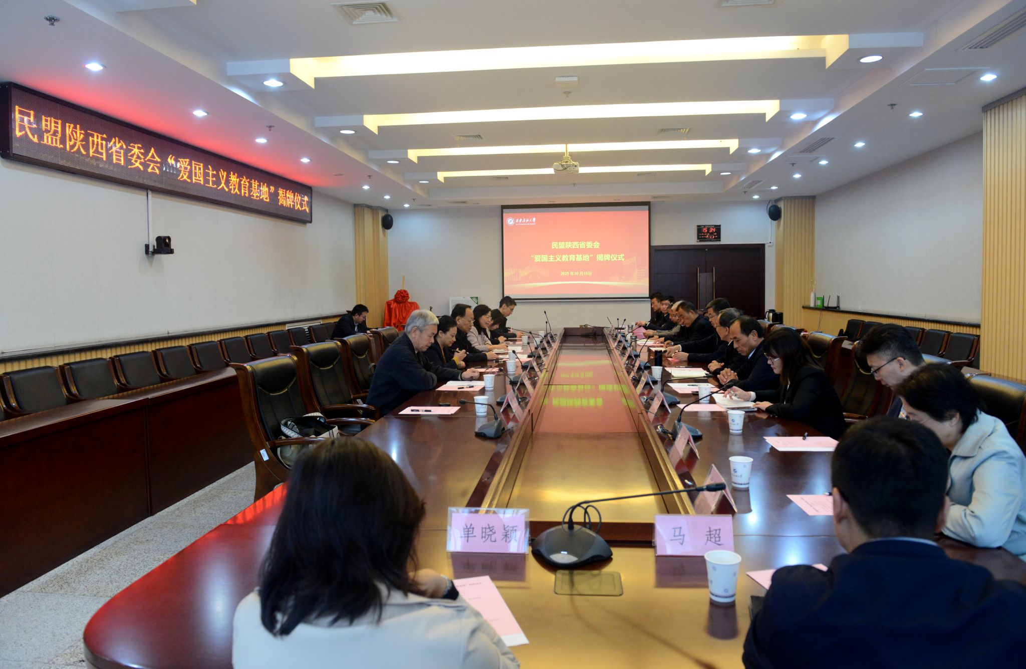 民盟陜西省委會辦公室和宣傳部負責人,我校黨委辦公室(校長辦公室)、黨委宣傳部、黨委統戰部、黨委學生工作部、研究生工作部、團委、檔案館等有關部門負責人,民盟西安石油大學支部主委和盟員代表參加揭牌儀式。