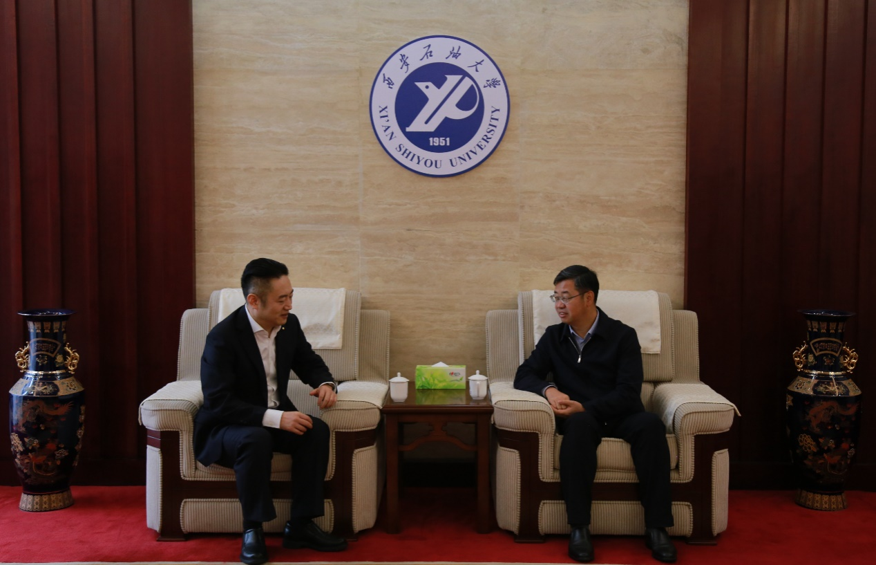 座談前,校長王進富在鄠邑校區貴賓室與劉勤志進行了親切會談。他指出,校友是學校的核心資源與寶貴財富,更是學校發展的底氣、驕傲和戰略支撐。學校第三次黨代會提出了“構建校友終身命運共同體”的發展理念,目前已連續舉辦2屆“校友秩年返校共商高質量發展大會”,學校通過優化內部機構強化校友工作,進一步凸顯校友在學校事業發展中的不可替代作用。他強調,近年來學校始終堅持“開放辦學、智慧辦學、服務辦學”理念,緊扣行業產業需求,深化產教融合、聚焦企業需求、發揮學校優勢,圍繞人才培養、科學研究和社會服務三大核心職能,與行業企業開展全方位、深層次合作。他希望,雙方能夠聚焦合作契合點、著力點與共振點,進一步深化合作內容、創新合作形式,推進科研、人才培養及平臺建設,在更寬領域、更高水平實現互惠共贏,助力國家能源戰略實施與區域經濟社會發展。