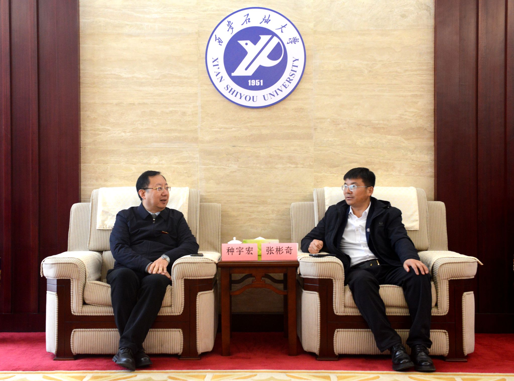 會前,種宇宏與中海石油(中國)有限公司天津分公司工程技術部副主任工程師張彬奇(我校2001級校友)會見交流。雙方回顧了學校辦學歷程、發展現狀,并就畢業生招聘、畢業生實習、人才聯合培養、科研攻關等進行了充分交流。