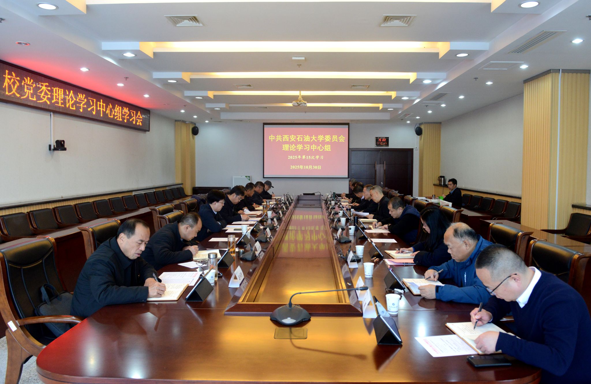 10月30日下午,校黨委理論學習中心組2025年第15次學習會在鄠邑校區第二會議室召開,深入學習領會黨的二十屆四中全會精神,習近平給中國農業大學全體師生、天津大學全體師生的重要回信精神,以及《習近平談治國理政》(第五卷),中省有關會議、文件等。校黨委副書記、校長王進富主持并講話,校黨委理論學習中心組成員參加會議。