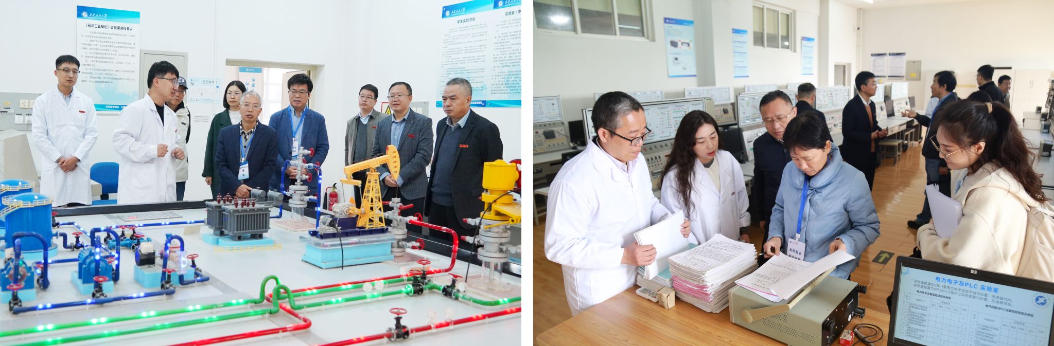 見面會結束后,專家組分組考查了鐵人王進喜紀念館、校史館、圖書館、工程訓練中心,以及機械設計制造及其自動化和電氣工程及其自動化專業實驗室,并就相關問題與專業教師進行了溝通和交流。