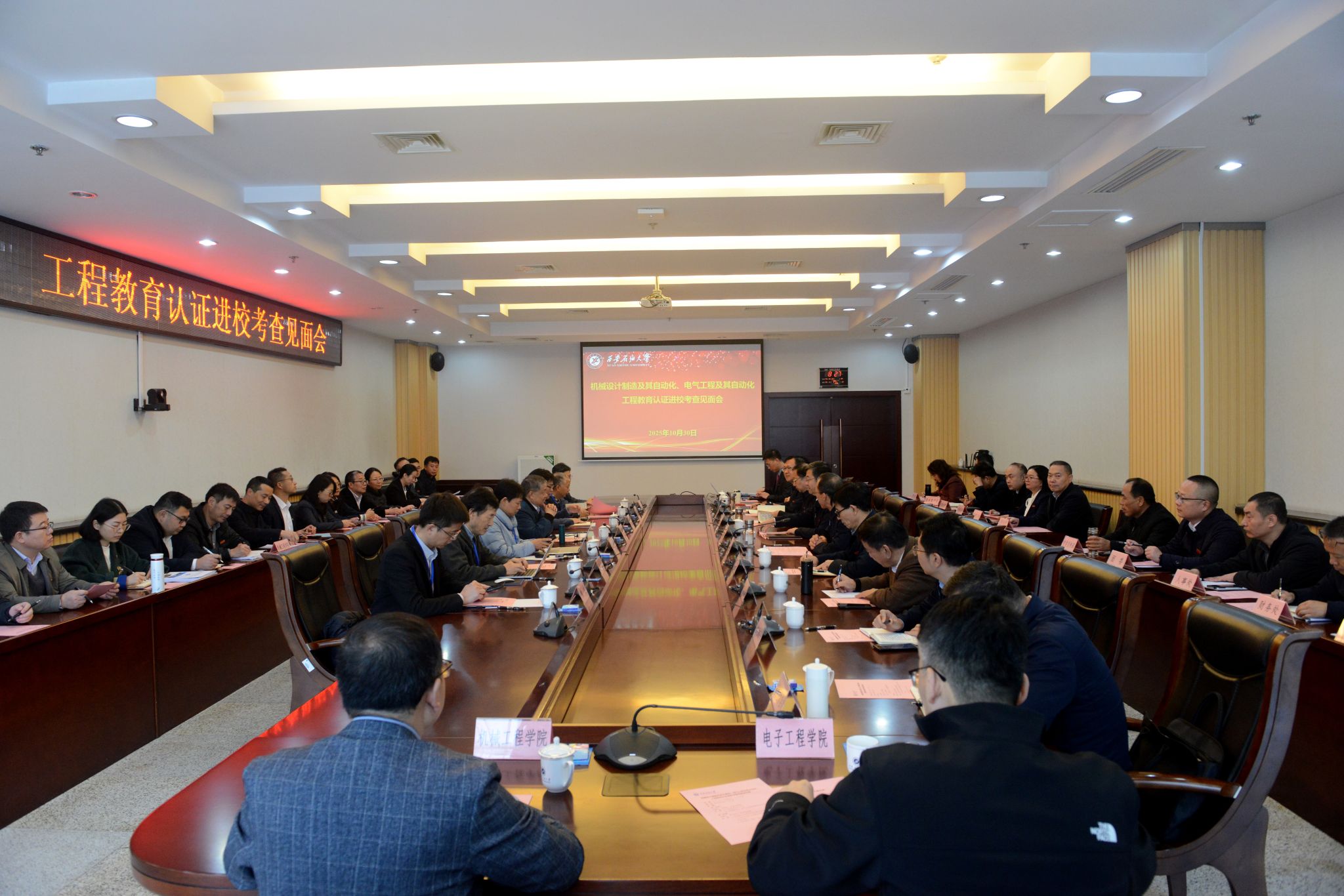 30日上午,考查專家組見面會在鄠邑校區第二會議室舉行。考查專家組聯合組長張星臣教授,專家組成員北京理工大學唐水源教授、湖南大學譚陽紅教授、西南交通大學田懷文教授、南京南瑞繼保電氣有限公司黃健教授、山東理工大學趙繼成教授、北京化工大學魏杰教授,校長王進富,副校長張君濤、種宇宏出席會議。校本科督導專家組組長,相關職能部門和教輔單位負責人,機械工程學院、電子工程學院領導班子成員,機械設計制造及其自動化、電氣工程及其自動化專業負責人以及專業教師代表參加了見面會。