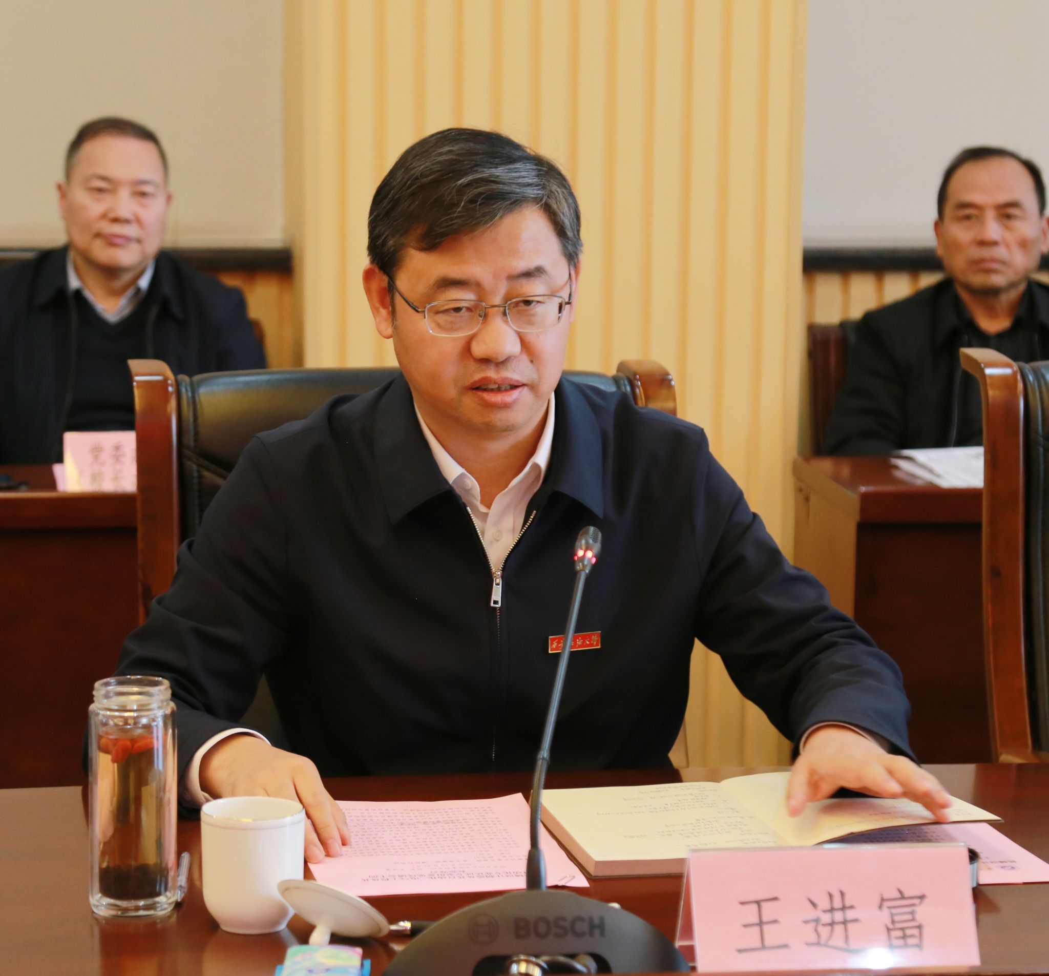 王進富代表學校對專家組進校考查表示熱烈歡迎,他簡要介紹了學校的辦學歷史,以及兩個專業的發展情況,并請各位專家對專業的專業建設和人才培養工作進行把脈和指導。