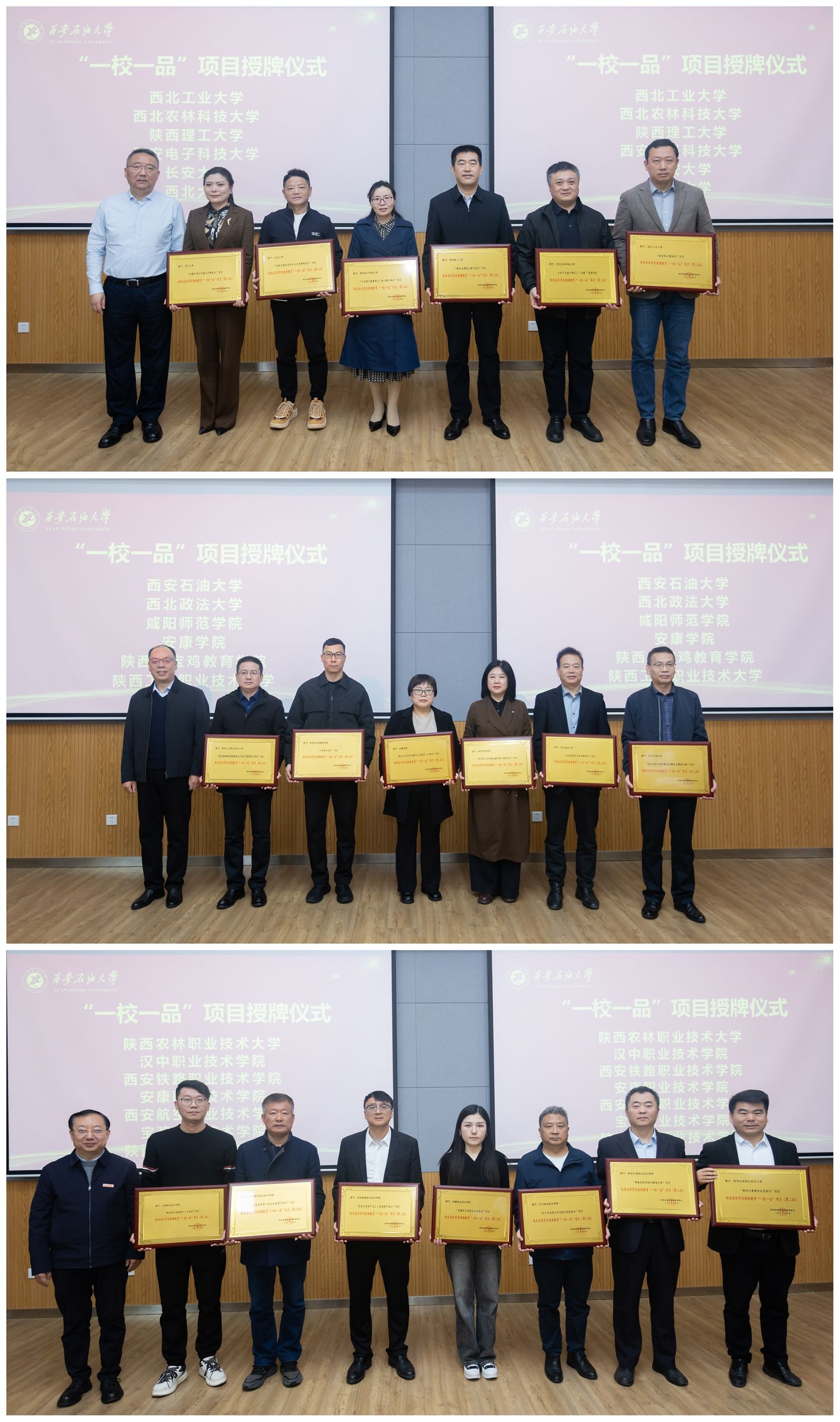 在非學歷繼續教育“一校一品”項目授牌儀式上,葉培哲宣讀了陜西省高等繼續教育學會《關于公布陜西省非學歷繼續教育“一校一品”項目(第二批)評選結果的通知》,包括我校非學歷繼續教育項目“園區發展與高質量項目建設專題研討班”在內的19所高校的非學歷教育特色項目入選,龍治剛、葉培哲和種宇宏分別為19所高校代表頒發牌匾。