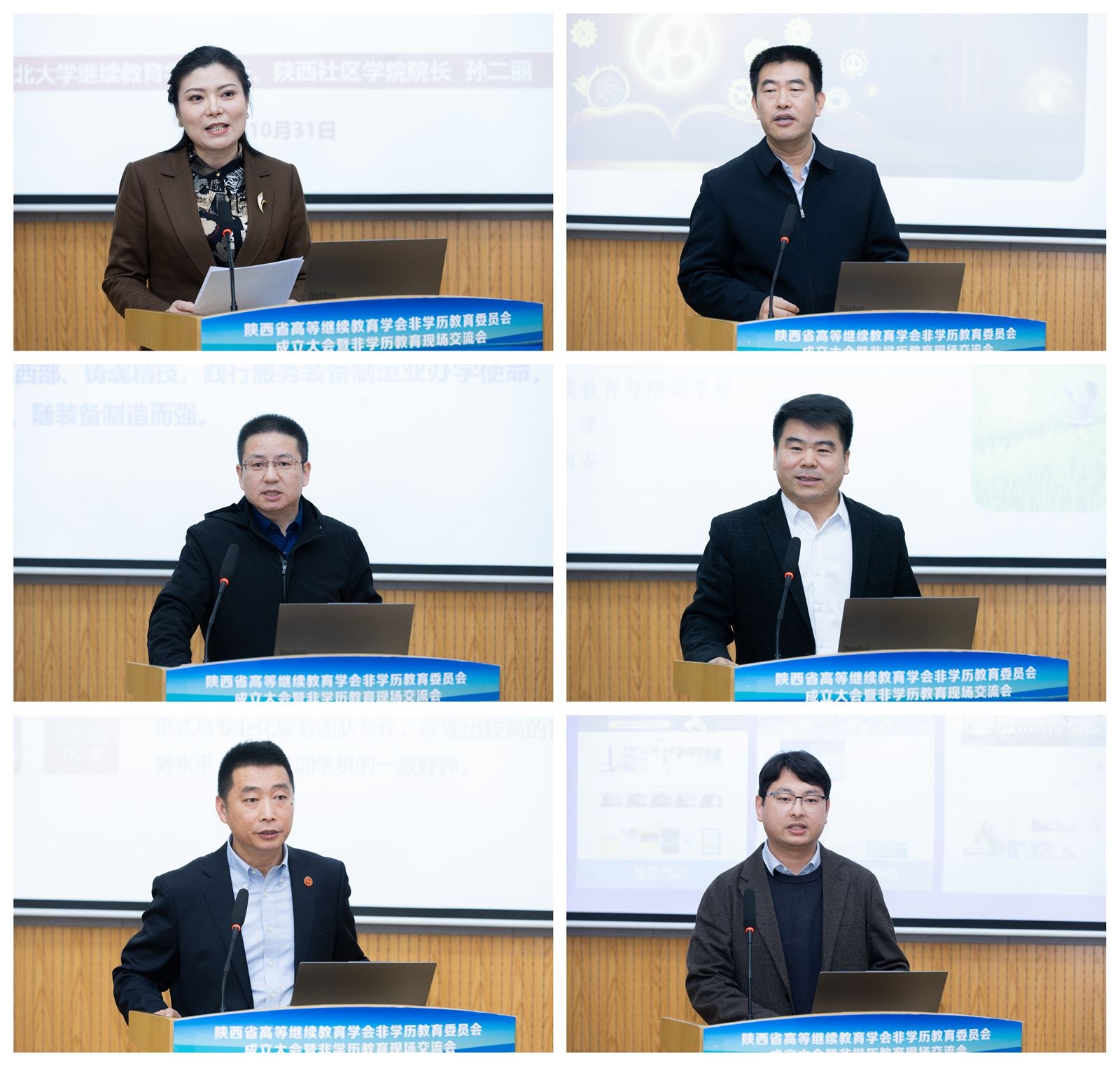 在研討交流環節,西北大學繼續教育學院院長孫二麗,陜西理工大學繼續教育學院院長李強,陜西工業職業技術大學繼續教育與培訓學院院長閆軍,陜西農林職業技術大學繼續教育與培訓學院、村干部(農民)發展學院院長黃璞,西安石油大學繼續教育學院培訓辦公室主任、培訓中心培訓總監于宏坤,超星泛雅集團繼續教育事業部副總經理肖鐳分別做了交流發言,分享了“理論+實踐”“線上+線下”“校內+校外”等多元非學歷教育模式,為全省高校非學歷教育工作提供了借鑒,凝聚了共識。