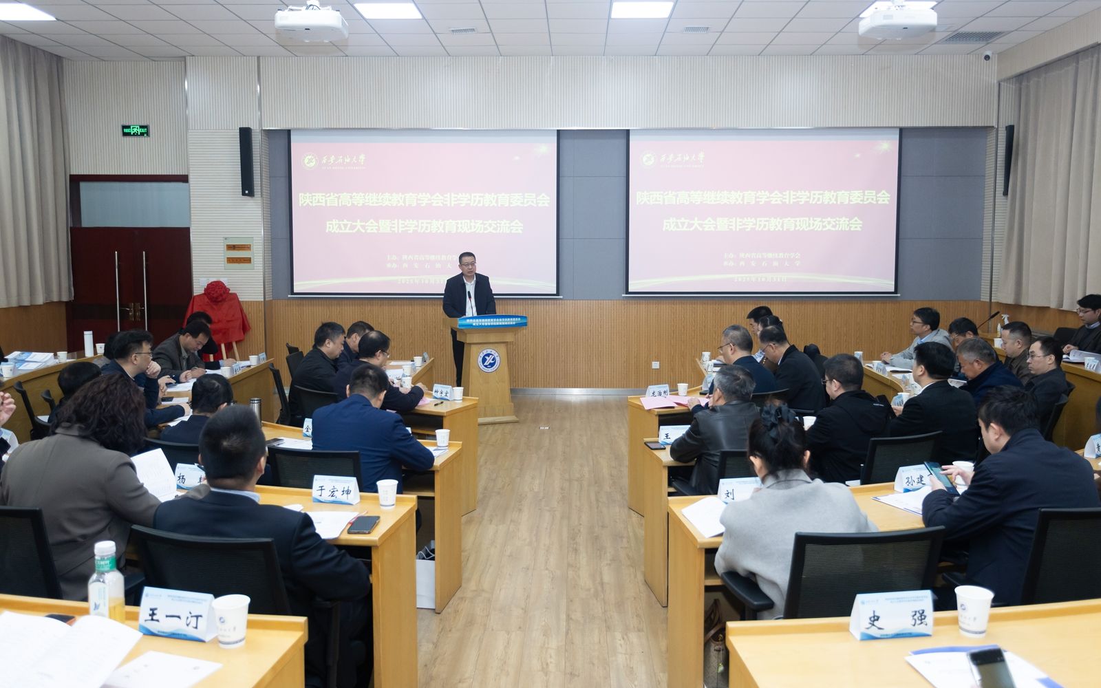 10月31日上午,陜西省高等繼續教育學會非學歷教育委員會成立大會暨非學歷教育現場交流會在我校明德校區成功舉辦。陜西省高等繼續教育學會會長、陜西開放大學黨委書記龍治剛,我校黨委委員、副校長種宇宏出席,陜西省高等繼續教育學會副會長兼秘書長、西北大學繼續教育學院黨總支書記葉培哲,第一屆非學歷教育委員會主任委員、副主任委員以及會員單位約50余名代表參會。學會副會長、第一屆非學歷教育委員會主任委員、我校繼續教育學院院長林紅先主持會議。