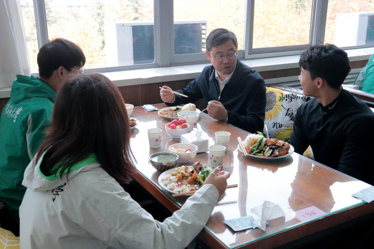 儀式結束后,校領導以及各相關職能部門和學院負責人與運動員代表共同舉行了“師生午餐會”,并向同學們贈送了紀念品。餐桌上,與會各位老師與學生們親切交流,詢問運動訓練和在校生活情況,積極關心和回應同學們近期關注和遇到的各類問題,在學習、就業、生涯規劃等方面給予同學們很多建議。大家紛紛表示,校領導及老師們的關懷讓他們倍感溫暖,未來將以更優異的成績回報母校。