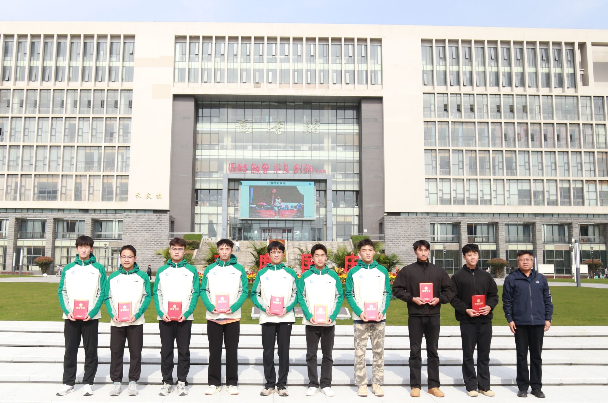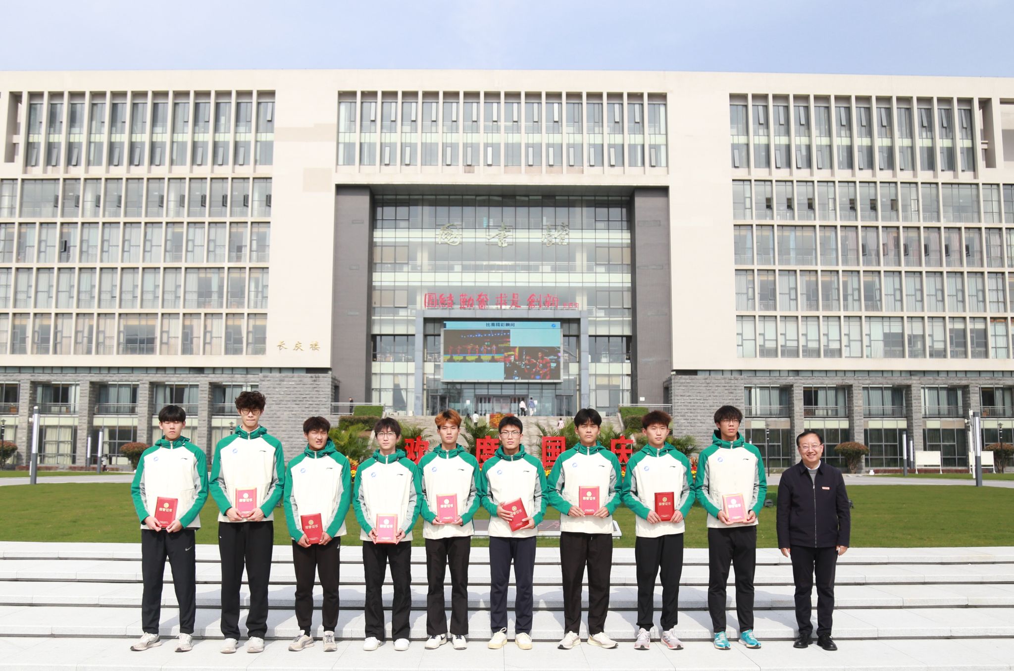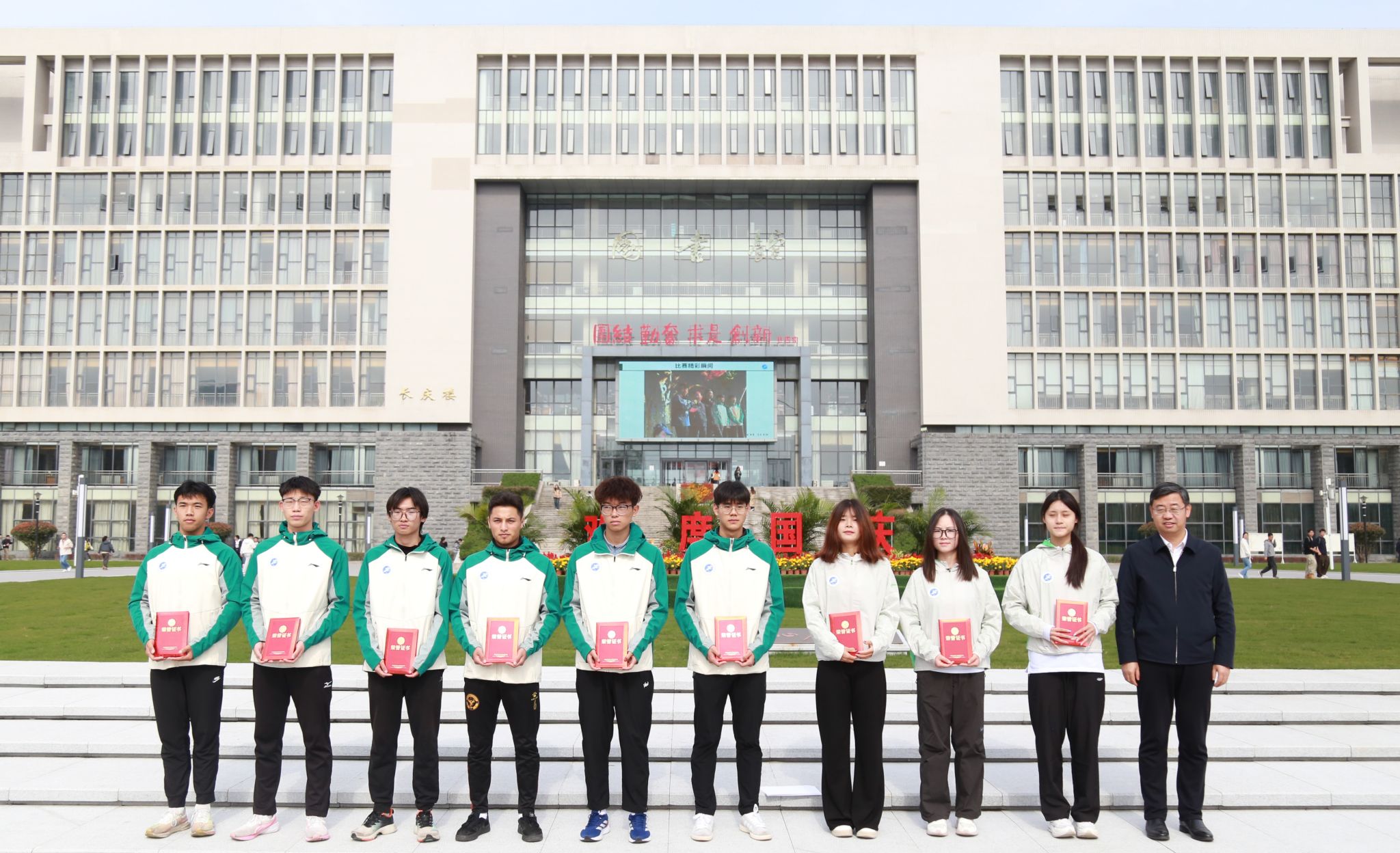 儀式上,王進富、張驍勇、種宇宏分別為校田徑隊和健美隊的運動員們頒發了參賽榮譽證書。