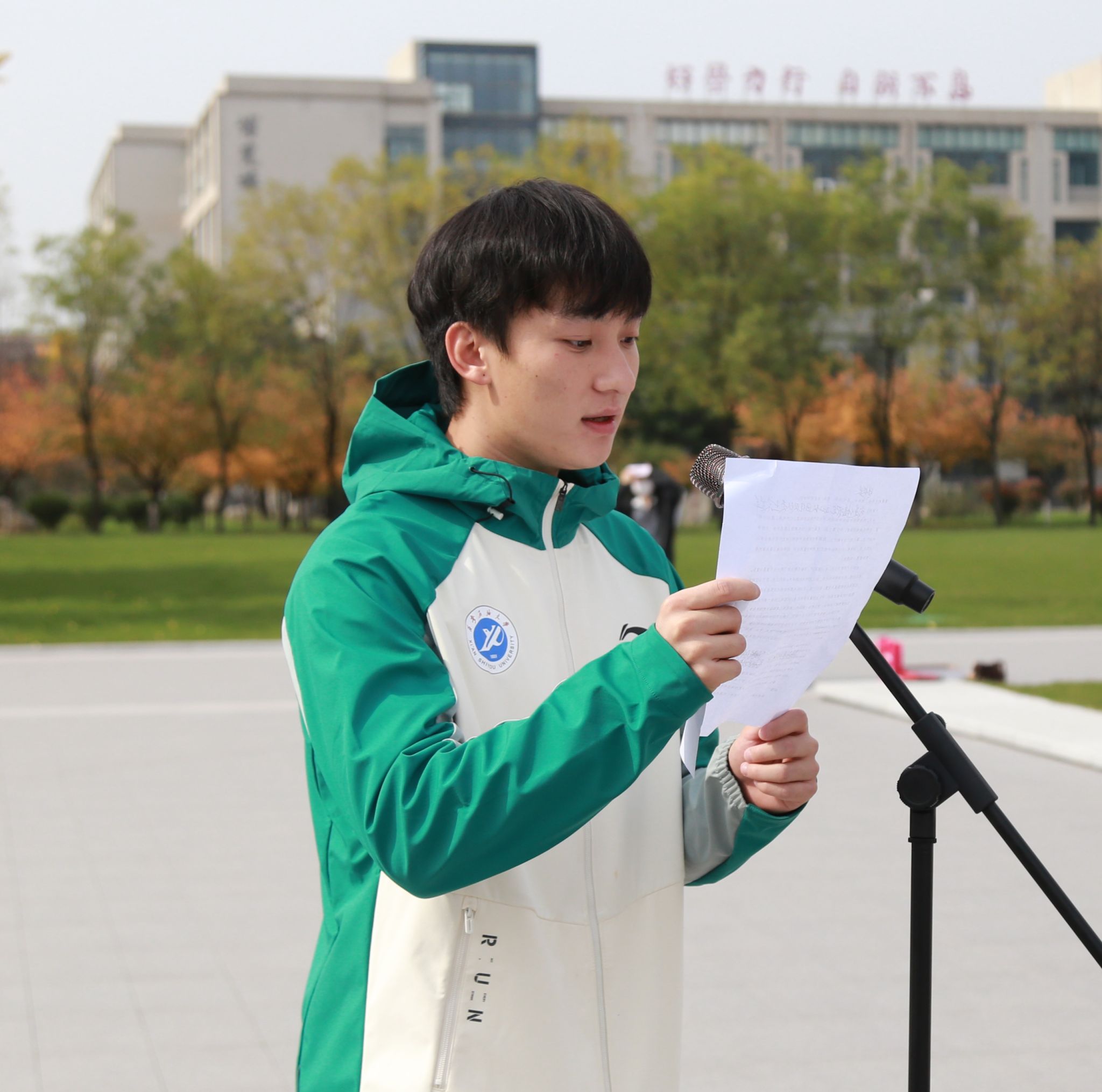校田徑隊隊長、社體2202班王家輝作為運動員代表發言,他深情回顧了備賽期間的辛苦訓練和比賽過程中的團結協作。他表示,每一項成績的取得都離不開運動員們無數次的揮汗如雨和教練們的悉心指導,也離不開各位領導老師的大力支持與幫助,今后將以此次比賽為起點,繼續以更加飽滿的熱情投入訓練,努力再次為校爭光。