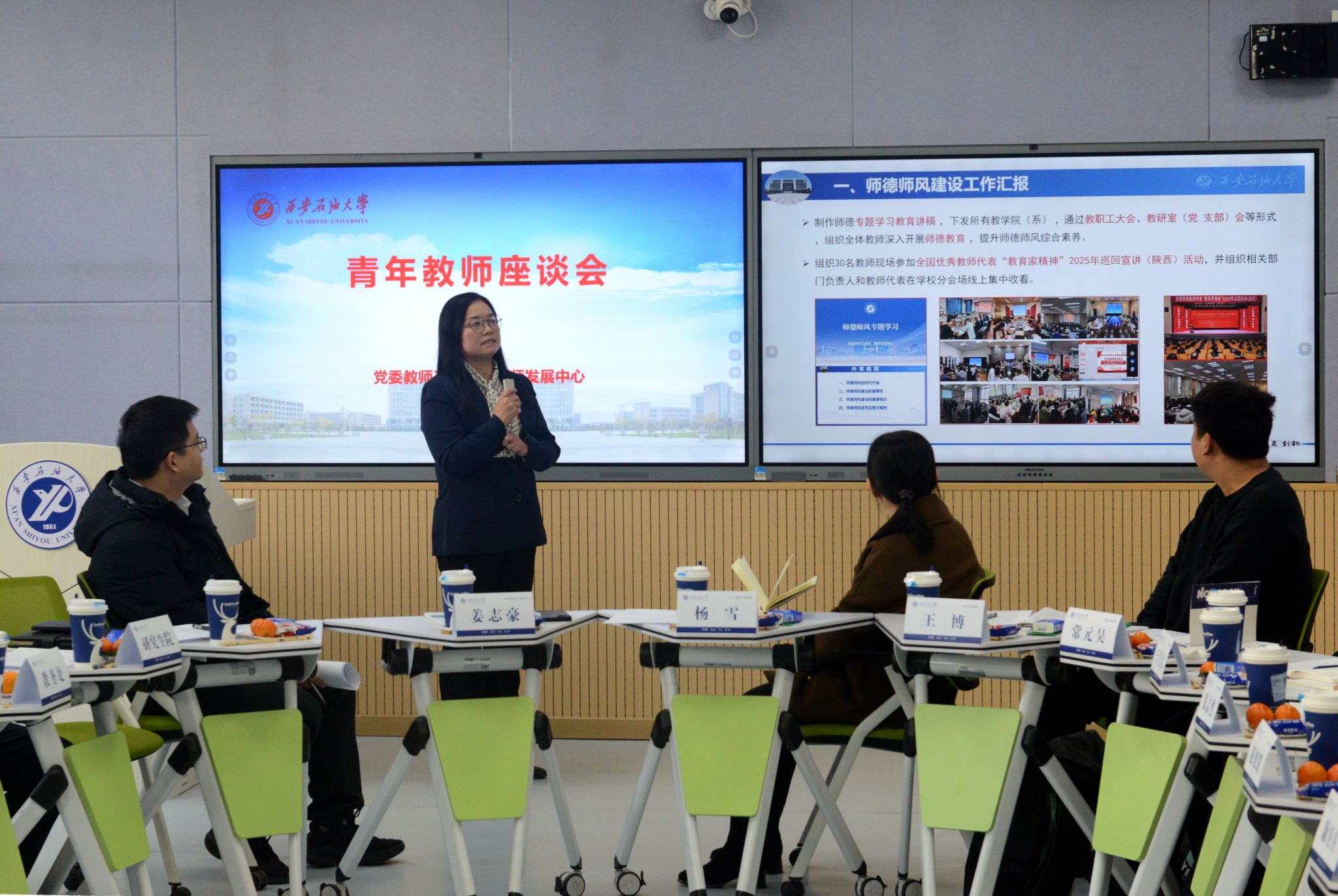 在青年教師經驗分享環節,地球科學與工程學院姜志豪副教授、管道工程學院楊雪博士、機械工程學院王博博士結合自身教學科研經歷分享了感悟,講述了自己在團隊協作、科研創新、成果轉化等方面的心得,表達了青年教師扎根科研、服務社會的決心,并從青年教師成長成才的角度,分享了自己在導師指導、學術交流、平衡教學與科研關系等方面的體會,引發了在場青年教師的強烈共鳴。