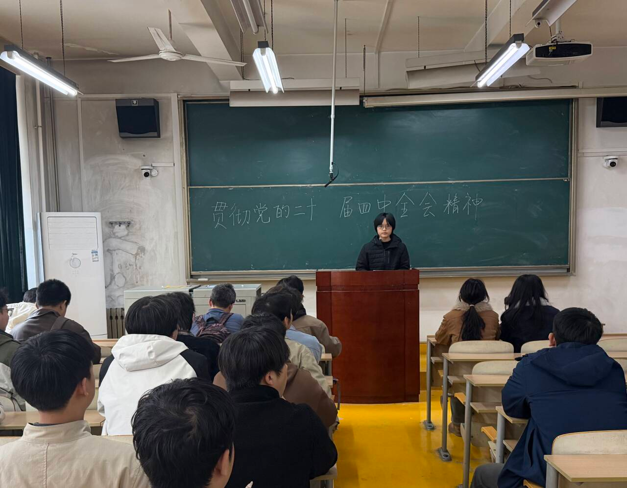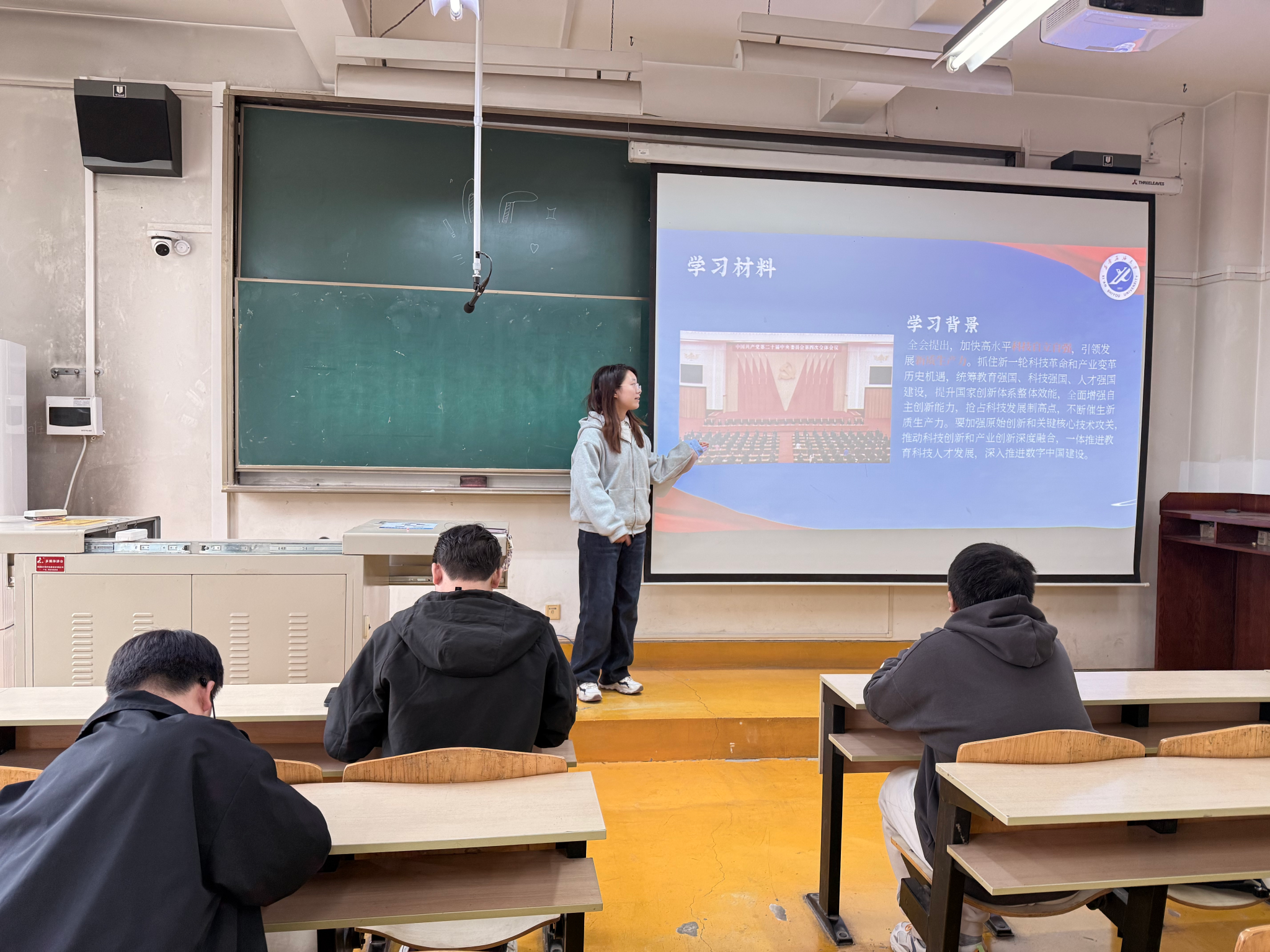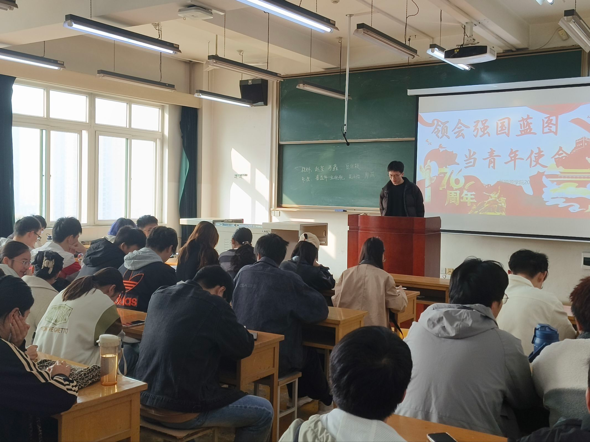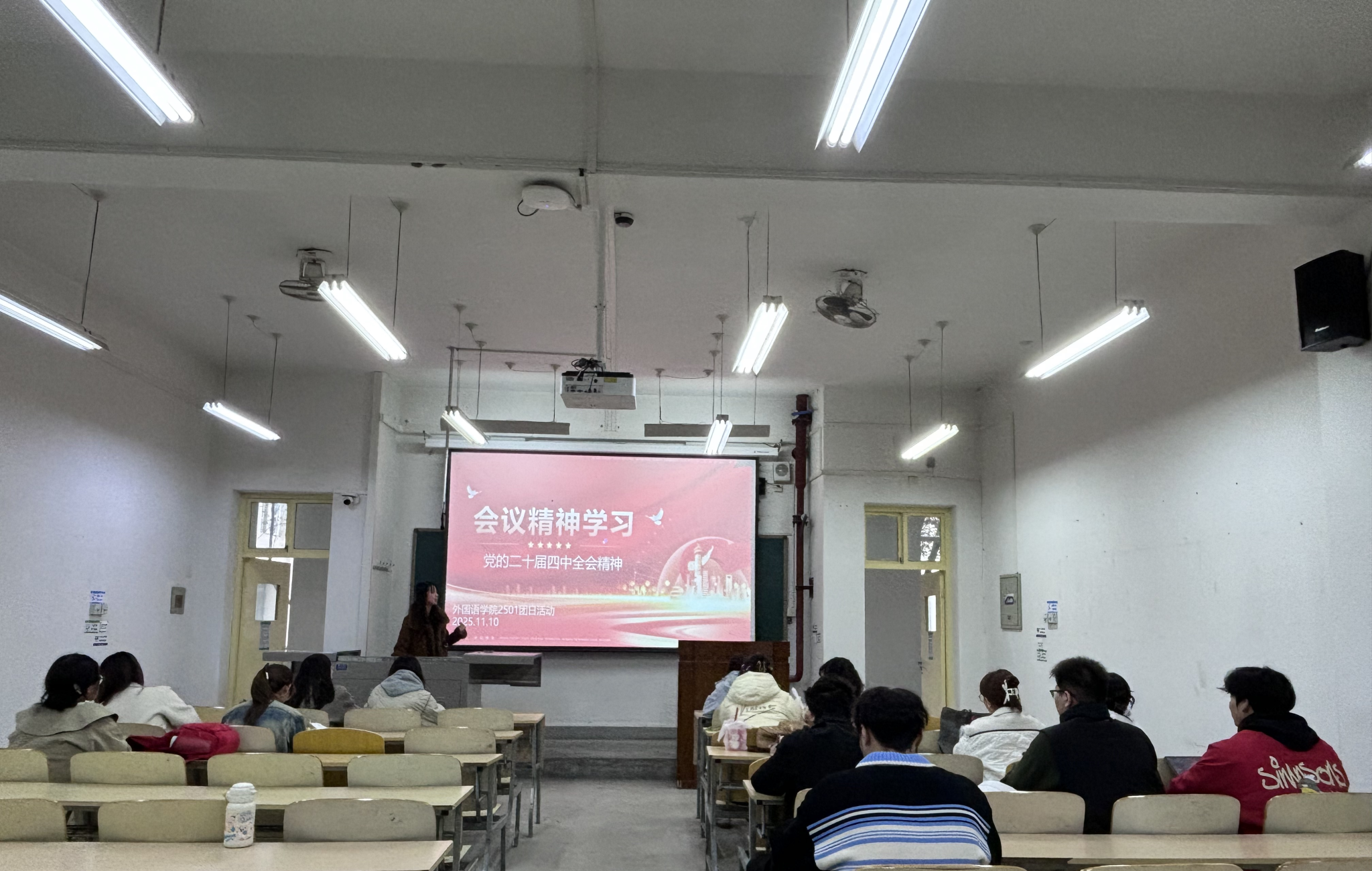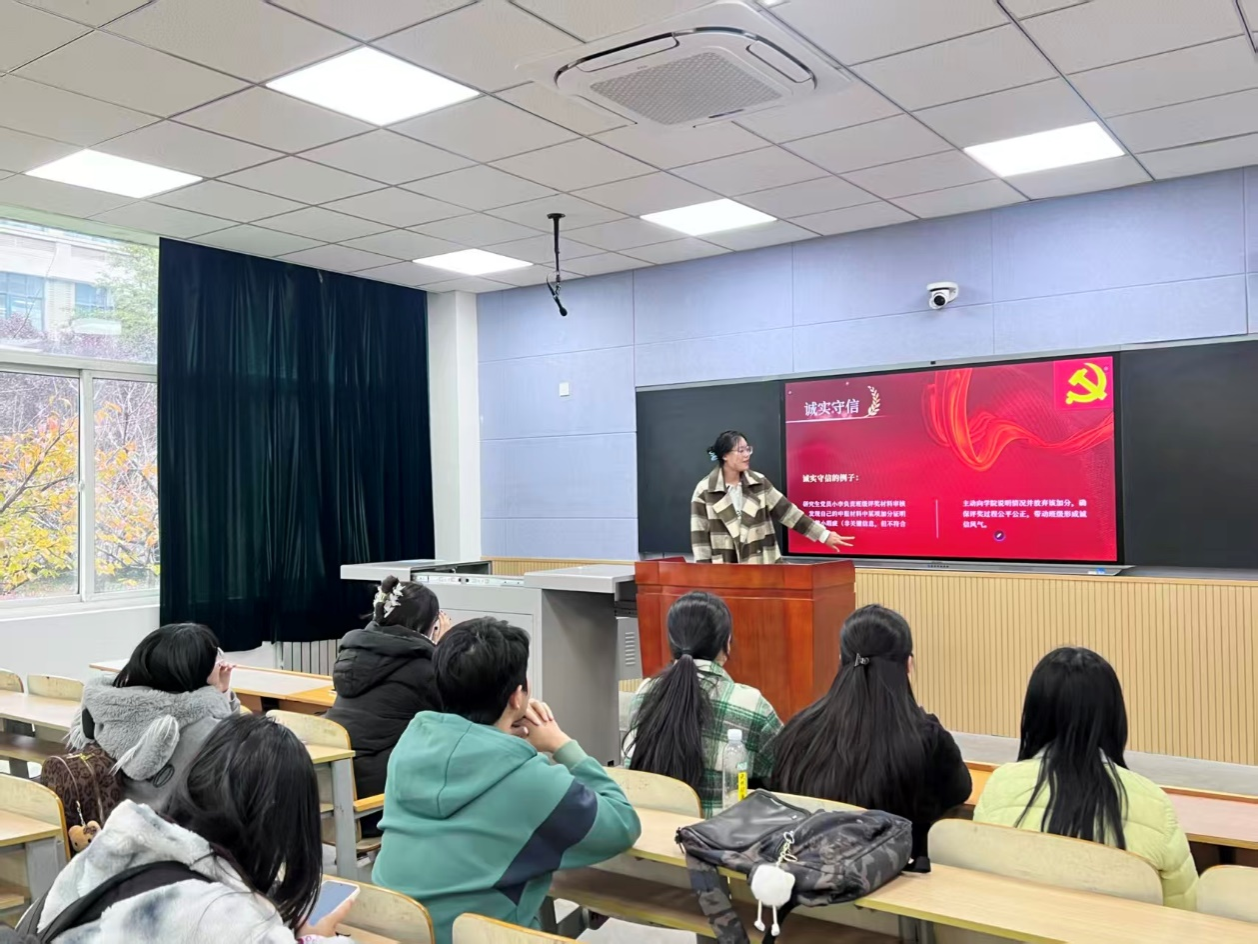 外國語學院召開“不忘初心、牢記使命”學習黨的二十屆四中全會精神主題團日活動。團支書通過PPT,從全會核心議程、“十五五”規劃部署及青年使命三個維度進行了系統解讀,并巧妙結合外語專業特色,指出在“網絡強國”“文化繁榮”等國家任務中,多語種服務、人工智能翻譯、跨文化傳播等領域是外語人的用武之地。在互動研討中,翻譯專業同學分享了在“中國典籍外譯”項目中如何更好地傳遞中國文化智慧的思考;學習委員則從“統籌發展和安全”角度,闡述了堅守“學術誠信”底線的重要性。活動有效引導同學們將國家大政方針與專業學習、學術研究緊密結合,深化了對外語人作為文化交流橋梁、學術安全守護者角色的認識,凝聚了“強國有我”的共識與擔當。