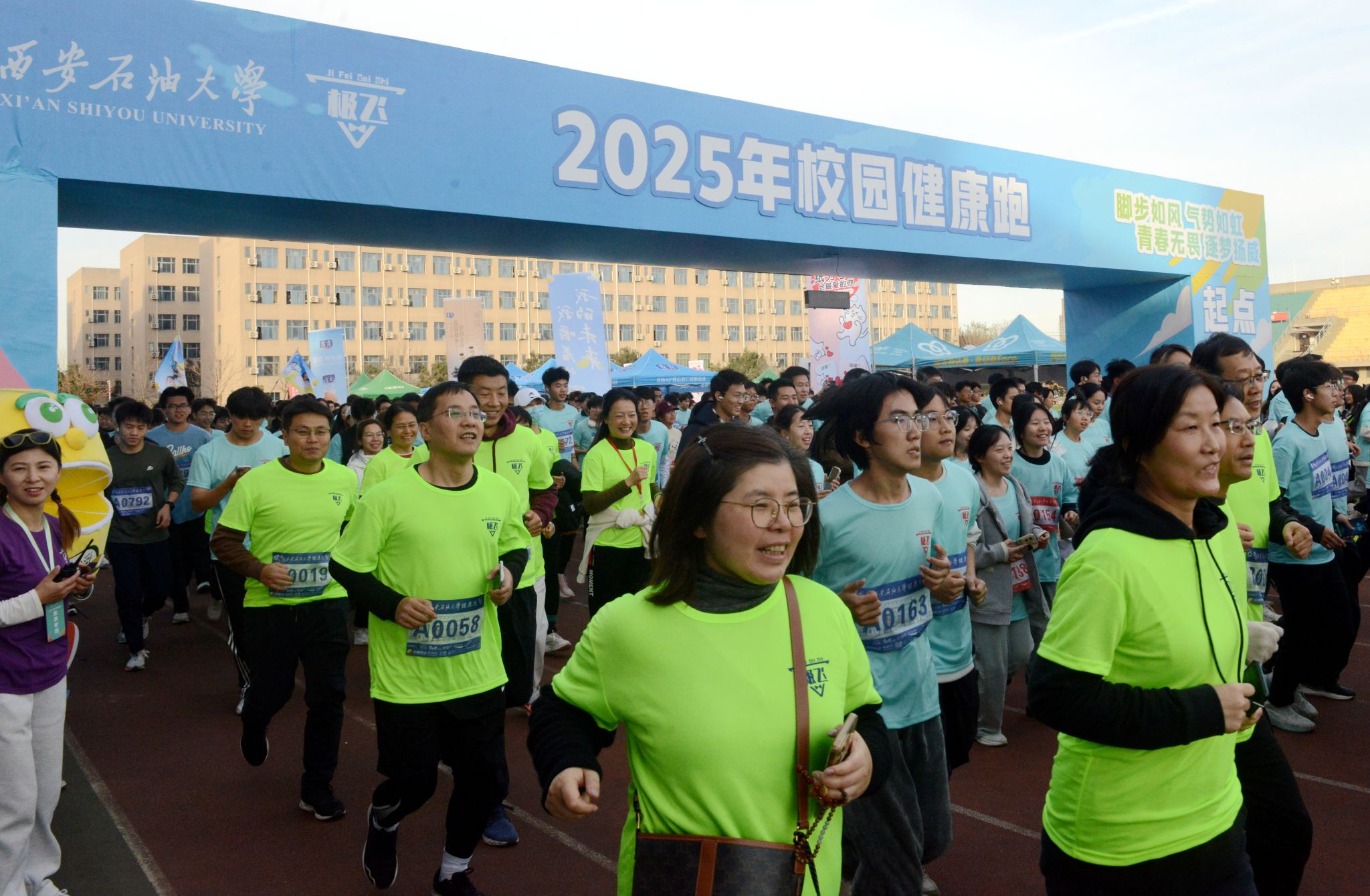 11月19日下午,我校鄠邑校區(qū)東田徑場上洋溢著一片蓬勃朝氣。一千四百余名師生齊聚一堂,共同參加2025年校園健康跑活動。這場由校體育運動委員會主辦,體育學院、教育部油緣成長綜合素質訓練基地、極飛賽事承辦,宣傳部、學生工作部、保衛(wèi)部、校工會、團委、校醫(yī)院、各院(系)協(xié)辦的活動,不僅是一場體育賽事,更是學校“以體育人”、建設“幸福西石大”理念的生動實踐。