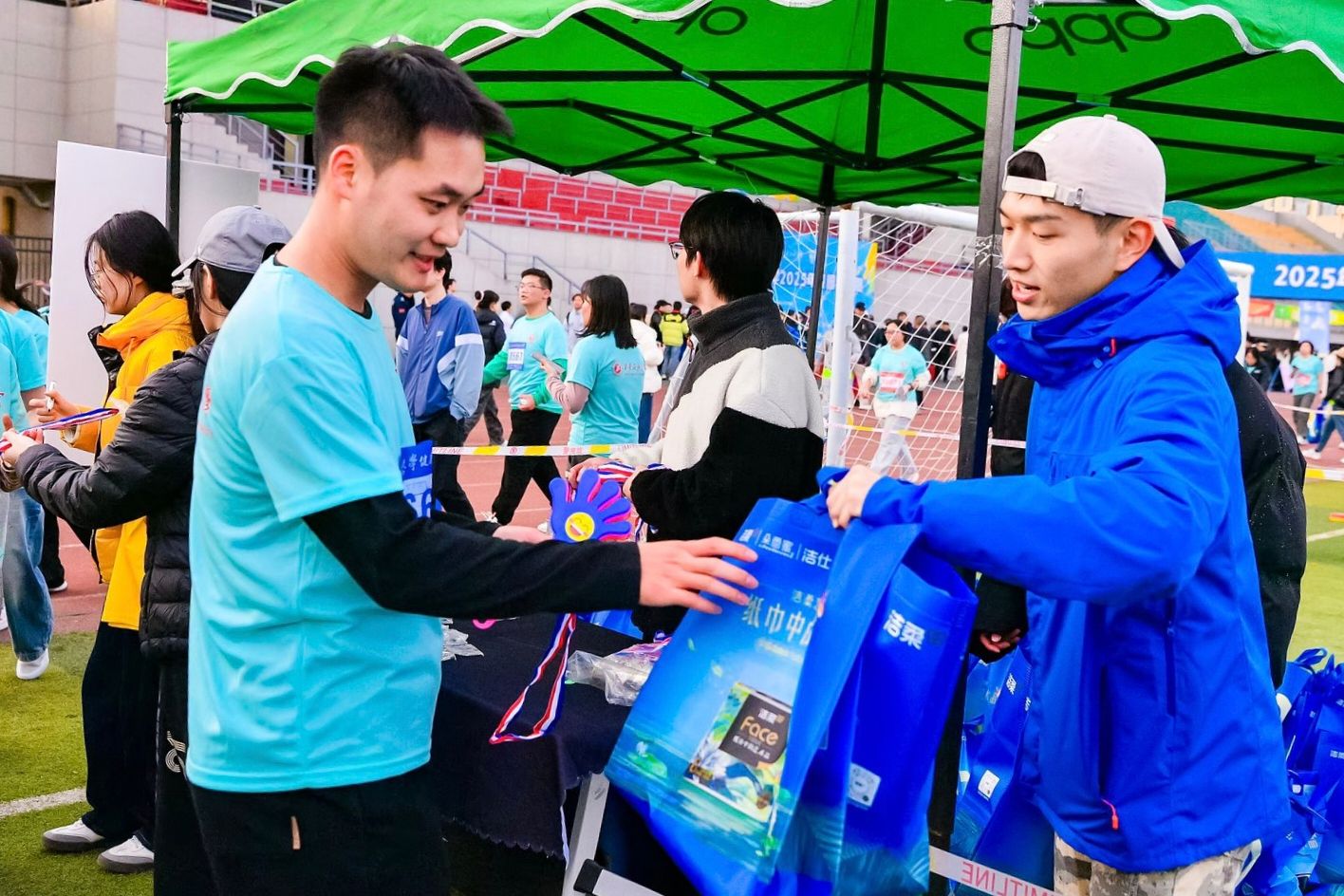 在物資保障方面,組委會為參賽者提供了專屬參賽服和號碼簿。完賽選手不僅可以獲得精美獎牌,還能領取實用的完賽包,包括礦泉水、露露、邁德思客兌換券、泰康拜博口腔卡、潔柔手帕紙、濕巾和丹鶴鍋巴等物品。