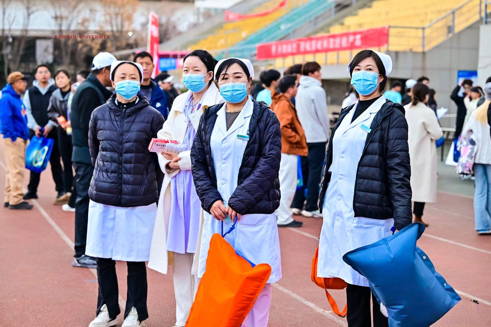 為保障活動安全進行,所有參賽者均提前簽署了《健康安全承諾書》,承諾遵守賽事規(guī)則,服從工作人員安排。醫(yī)療、安保和補給站志愿者各司其職,為選手提供全方位的保障服務。校醫(yī)院全程待命,確保能夠及時處理突發(fā)情況。