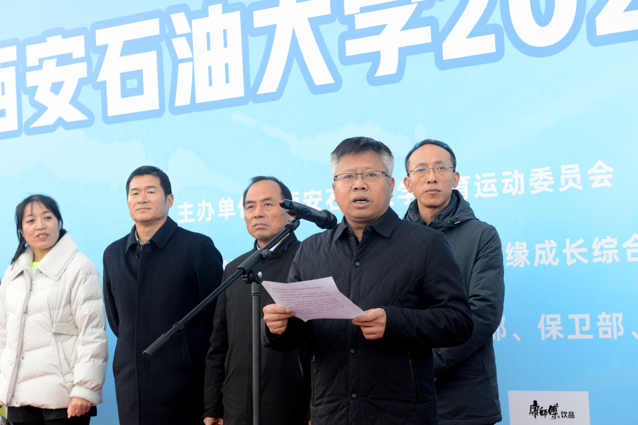 16時,開幕儀式正式拉開帷幕。集體熱身后,全體參與者齊唱國歌,激昂的旋律回蕩在校園上空。副校長張驍勇在致辭中表示,推動全民健身與全民健康深度融合,是黨和國家的重要方針。舉辦本次校園健康跑,不僅是一場體育賽事,更是一場展示校園活力和師生精神風貌的體育盛會。希望大家在奔跑中,既能挑戰(zhàn)自我、突破極限,也能相互鼓勵、攜手并進,深刻體會“更快、更高、更強、更團結”的奧林匹克精神真諦。