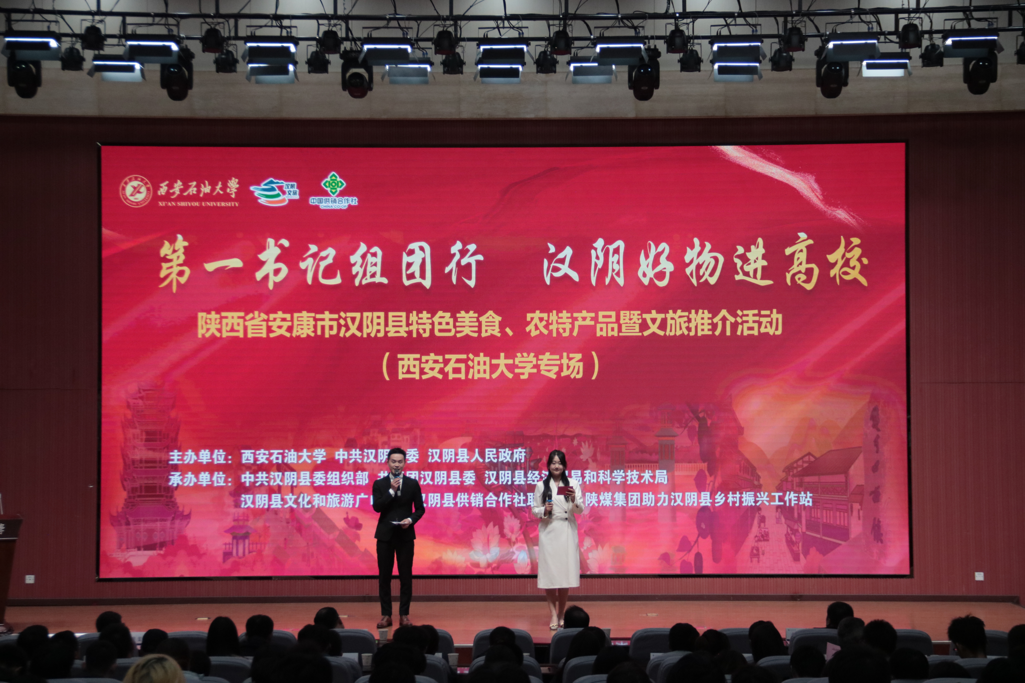 11月20日,“第一書記組團(tuán)行?漢陰好物進(jìn)高校”—陜西省安康市漢陰縣特色美食、農(nóng)特產(chǎn)品暨文旅推介活動在我校鄠邑校區(qū)成功舉辦。漢陰縣委副書記王眾義,縣委常委、組織部長李萬華,縣政府黨組成員屈斐斐,縣委組織部、共青團(tuán)漢陰縣委、經(jīng)濟(jì)貿(mào)易和科學(xué)技術(shù)局、文化和旅游廣電局、供銷合作社聯(lián)合社、陜煤集團(tuán)助力漢陰縣鄉(xiāng)村振興工作站等單位負(fù)責(zé)人,省市縣部分派駐漢陰縣駐村第一書記和工作隊(duì)員代表,我校副校長種宇宏,黨委組織部、黨委學(xué)生工作部、校團(tuán)委、教務(wù)處、科研處、校友工作與合作交流處、后勤處、西安石大資產(chǎn)經(jīng)營有限公司等單位負(fù)責(zé)人,各院(系)團(tuán)委(團(tuán)總支)書記,學(xué)生代表參與活動。