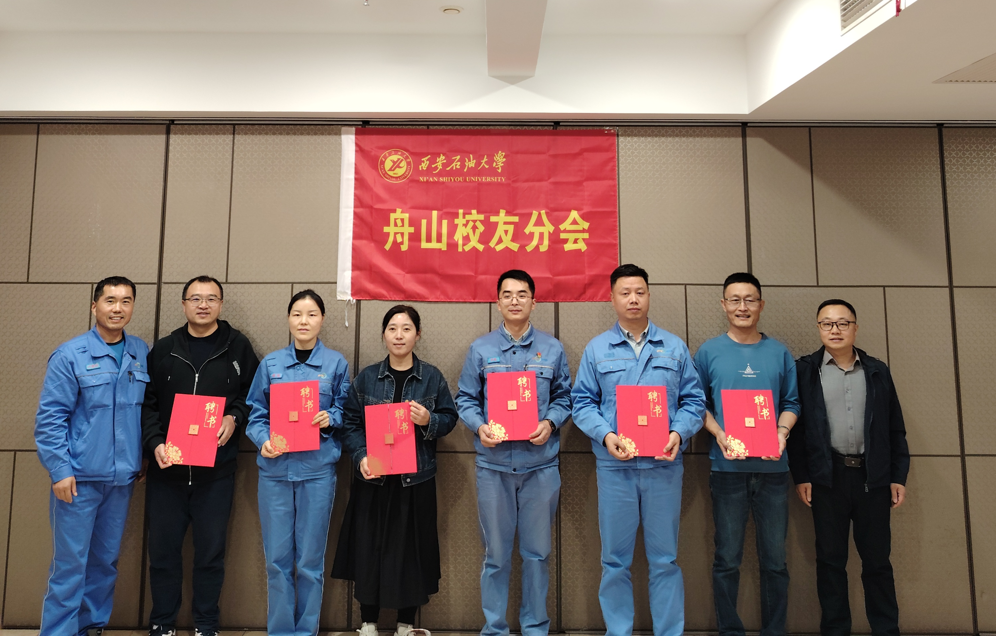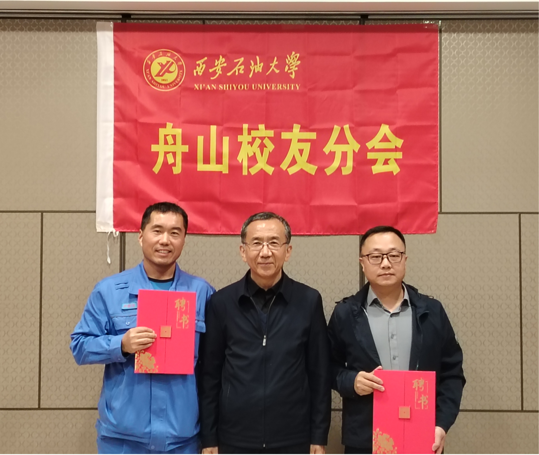 會上,張木向舟山校友分會會長、秘書長頒發了聘書;張榮軍向舟山校友分會授牌;覃彪宣讀了《關于成立西安石油大學舟山校友分會的批復》。盧喜洋向舟山校友分會副會長和副秘書長頒發了聘書。我校2008屆化學工程與工藝專業校友代兵代表舟山校友分會籌委會作了籌備工作報告。