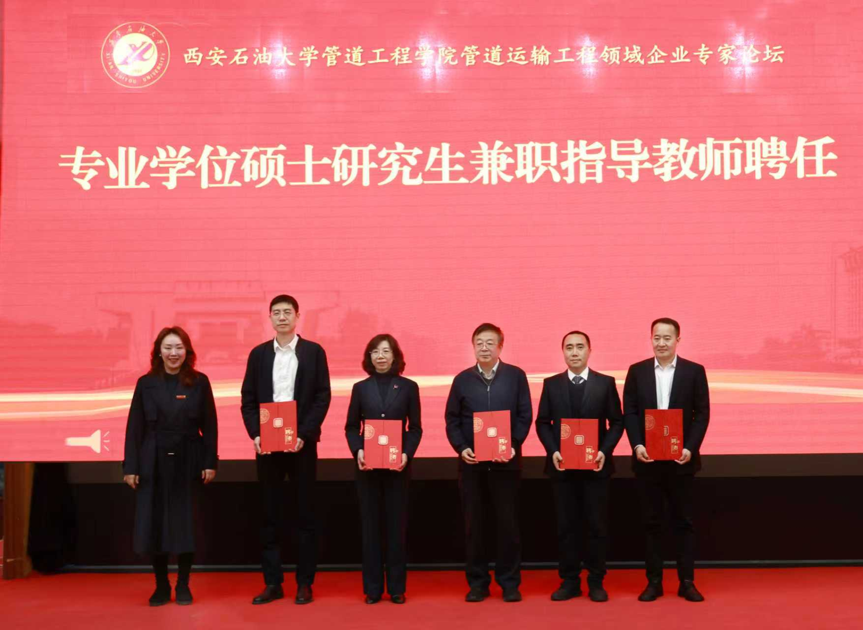 活動現(xiàn)場還舉行了陜西省“四主體一聯(lián)合”油氣管道維搶修校企聯(lián)合研究中心揭牌儀式,以及管道工程學院專業(yè)學位研究生兼職指導教師聘任儀式,進一步夯實了校企協(xié)同育人與科研合作的基礎。