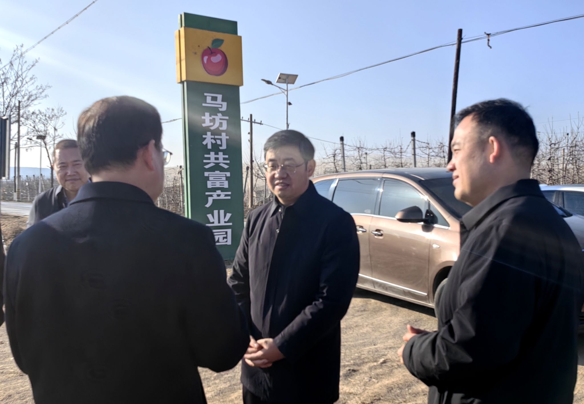 王進(jìn)富一行首先到馬坊鎮(zhèn)馬坊村進(jìn)行了走訪調(diào)研,馬坊鎮(zhèn)鎮(zhèn)長(zhǎng)劉翔向王進(jìn)富詳細(xì)介紹了馬坊鎮(zhèn)的基本情況以及近幾年在脫貧攻堅(jiān)和鄉(xiāng)村振興方面的做法和取得的成效。隨后在王振的陪同下,王進(jìn)富一行參觀了馬坊村蘋果共富產(chǎn)業(yè)園,詳細(xì)聽取了相關(guān)負(fù)責(zé)人的產(chǎn)業(yè)介紹,并與縣、鎮(zhèn)、村干部進(jìn)行了深入交流。