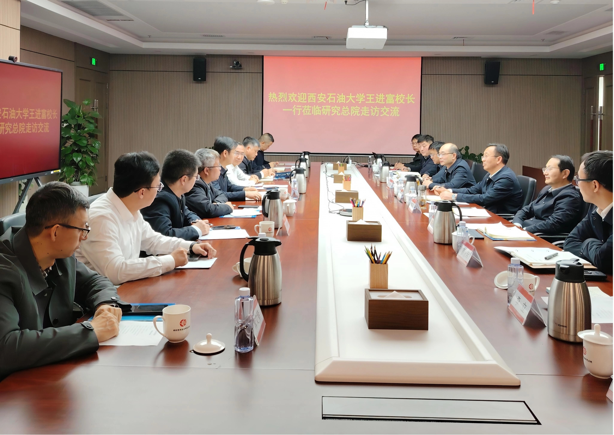 在國家管網(wǎng)集團(tuán)研究總院走訪期間,王進(jìn)富一行與國家管網(wǎng)研究總院院長張對(duì)紅、副院長李亞平及相關(guān)職能部門負(fù)責(zé)同志和校友代表座談交流。王進(jìn)富對(duì)國家管網(wǎng)集團(tuán)研究總院的熱情接待表示感謝。他指出,學(xué)校作為能源領(lǐng)域特色高校,近年來秉持“開放辦學(xué)、智慧辦學(xué)、服務(wù)辦學(xué)”理念,堅(jiān)定踐行“回歸初心,回歸行業(yè)”發(fā)展定位,把服務(wù)能源行業(yè)企業(yè)高質(zhì)量發(fā)展作為學(xué)校立身之本。近年來學(xué)校緊盯國家管網(wǎng)發(fā)展需求,以產(chǎn)業(yè)應(yīng)用為面向,以學(xué)科體系為依托,先后成立了卓越工程師學(xué)院和管道工程學(xué)院,針對(duì)性調(diào)整了相關(guān)專業(yè)學(xué)科體系,重點(diǎn)強(qiáng)化了管網(wǎng)仿真、管道檢測(cè)、材料焊接等學(xué)科領(lǐng)域的技術(shù)供給側(cè)改革,主動(dòng)適配產(chǎn)業(yè)發(fā)展與技術(shù)轉(zhuǎn)型的新形勢(shì)、新要求。期待以此次交流為契機(jī),雙方優(yōu)勢(shì)互補(bǔ),共享發(fā)展機(jī)遇、共建創(chuàng)新聯(lián)合體、共育管道新人才、共赴管道新未來,共同服務(wù)國家能源戰(zhàn)略,推動(dòng)經(jīng)濟(jì)高質(zhì)量發(fā)展。