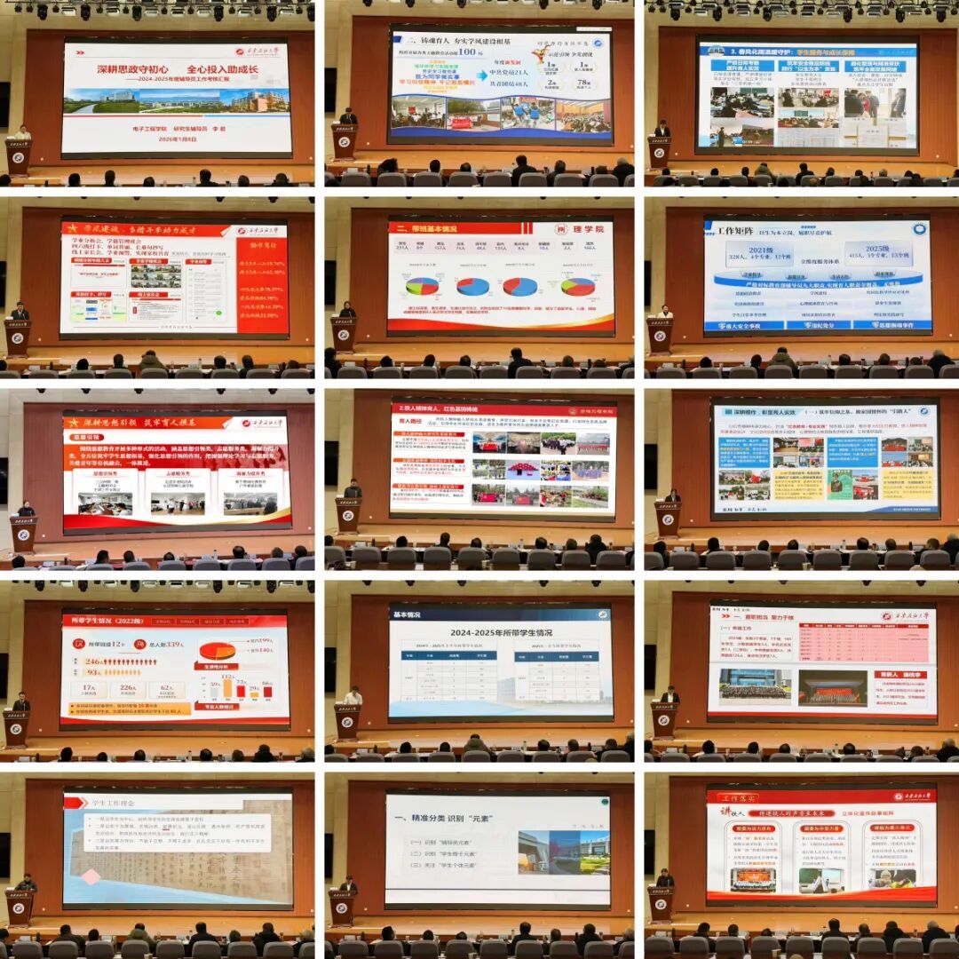 在院(系)匯報(bào)環(huán)節(jié),16個(gè)院(系)負(fù)責(zé)人依次登臺(tái),圍繞本學(xué)年學(xué)生工作核心任務(wù),從思想引領(lǐng)、學(xué)風(fēng)建設(shè)、黨團(tuán)建設(shè)、就業(yè)創(chuàng)業(yè)、心理健康、穩(wěn)定安全等關(guān)鍵維度,通過(guò)翔實(shí)數(shù)據(jù)與生動(dòng)案例,全面總結(jié)工作成效,深刻剖析短板不足,并明確下一年度“補(bǔ)短板、創(chuàng)特色、提質(zhì)效”的具體舉措。多個(gè)院(系)黨政負(fù)責(zé)人結(jié)合學(xué)科專業(yè)特色補(bǔ)充匯報(bào),充分彰顯了院(系)協(xié)同聯(lián)動(dòng)推進(jìn)學(xué)生工作的良好格局。
