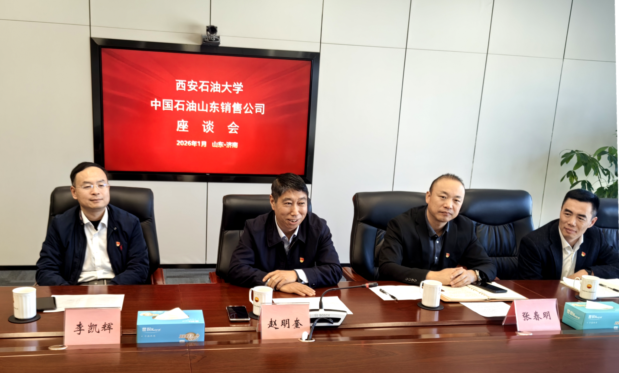1月7日上午,種宇宏一行來到中石油山東銷售公司。公司執(zhí)行董事、黨委書記趙明奎攜總會計師李凱輝及校友代表共同參與座談,現(xiàn)場氛圍熱烈融洽。座談中,趙明奎結(jié)合企業(yè)發(fā)展實踐,詳細介紹了公司在油品銷售網(wǎng)絡(luò)優(yōu)化、綠色能源推廣、數(shù)字化運營等方面的顯著成效,特別強調(diào)“人才是企業(yè)發(fā)展的第一資源”,對學(xué)校長期以來輸送的優(yōu)質(zhì)人才給予高度評價,感謝學(xué)校為行業(yè)發(fā)展提供的堅實人才支撐。種宇宏詳細介紹了學(xué)校在學(xué)科建設(shè)、科研成果轉(zhuǎn)化、人才培養(yǎng)等方面的亮點,期待與中石油山東銷售在趙明奎書記的推動下,盡快落地一批務(wù)實合作項目,實現(xiàn)人才培養(yǎng)、技術(shù)攻關(guān)、產(chǎn)業(yè)升級的多方共贏。