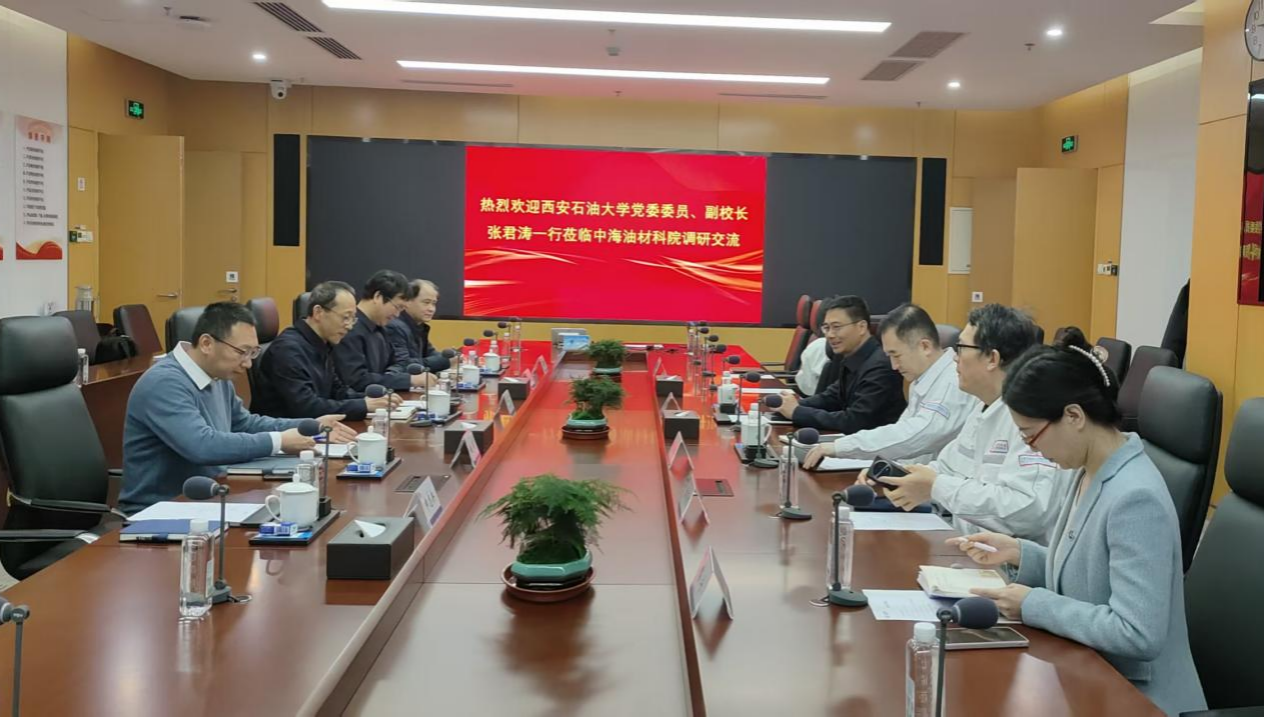 1月23日上午,張君濤一行來到中海油化工與新材料科學(xué)研究院(以下簡稱“材科院”)。在材科院黨委委員、副院長張鵬的帶領(lǐng)和科技管理部副經(jīng)理曲順利的講解下,參觀了高值化工品研究中心、先進(jìn)材料研究中心、高端潤滑油研究中心、分析表征與數(shù)智賦能研究中心等七個(gè)實(shí)驗(yàn)室。材科院黨委委員、副院長侯章貴主持座談會(huì),黨委委員、副院長張鵬,集團(tuán)公司資深專家、先進(jìn)材料中心負(fù)責(zé)人傅送保,科技管理部副經(jīng)理曲順利,人力資源部崗位經(jīng)理路寧,綠色低碳中心資深工程師張培培等部門負(fù)責(zé)人與技術(shù)專家參會(huì)。雙方圍繞能源化工與新材料領(lǐng)域的技術(shù)發(fā)展趨勢、聯(lián)合科研攻關(guān)、企業(yè)核心需求與產(chǎn)業(yè)發(fā)展、工程碩(博)士聯(lián)合培養(yǎng)等議題展開對(duì)話。學(xué)校相關(guān)職能部門介紹了在化學(xué)化工、新材料等學(xué)科的師資力量,以及“原油直接裂解制化學(xué)品”等最新煉油化工科研成果;材科院分享了在先進(jìn)材料研發(fā)、綠色低碳技術(shù)應(yīng)用等方面的實(shí)踐經(jīng)驗(yàn)。通過交流,雙方均表示要加強(qiáng)深化校企合作、實(shí)現(xiàn)資源互補(bǔ)的強(qiáng)烈意愿。