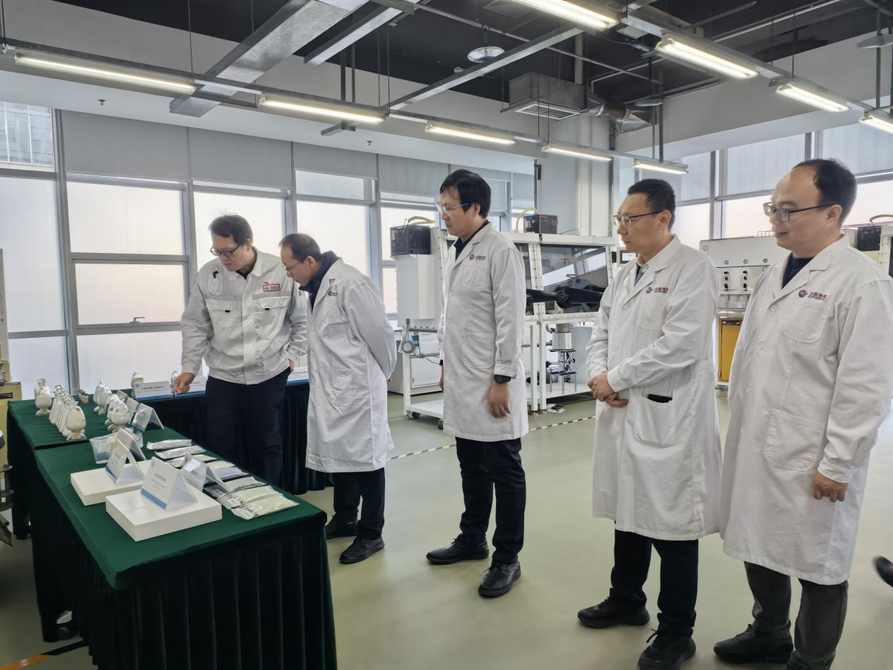 會(huì)前,在郭子芳的陪同下,張君濤一行參觀了北化院在合成樹脂、合成橡膠、合成纖維以及高端醫(yī)用化工新材料等領(lǐng)域的特色技術(shù)與產(chǎn)業(yè)成果展。