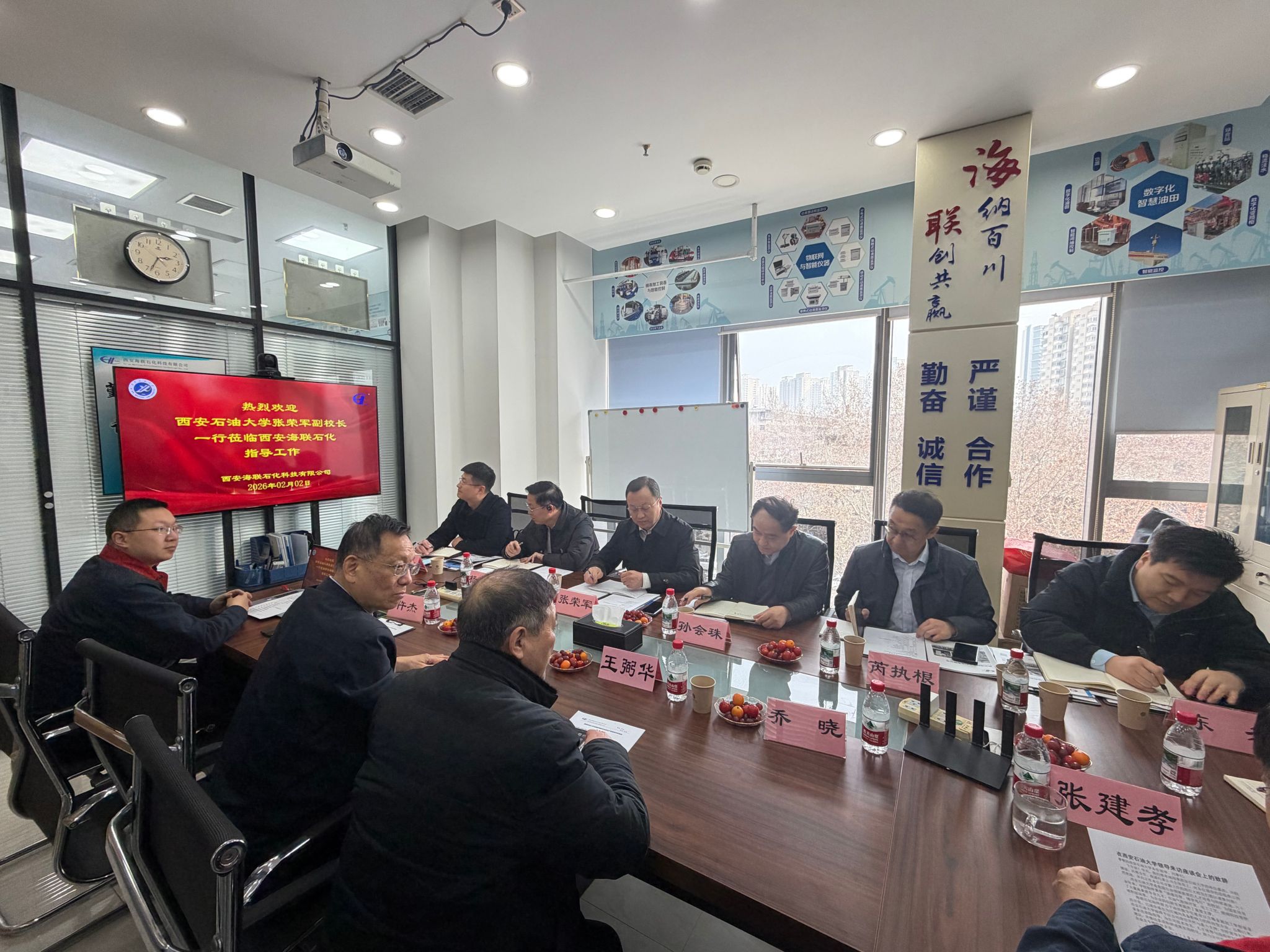 為深入貫徹落實高校畢業(yè)生就業(yè)工作部署,深化產教融合、校企合作,全力拓寬畢業(yè)生就業(yè)渠道,2月2日下午,副校長張榮軍帶隊赴西安海聯(lián)石化科技有限公司開展寒假訪企拓崗促就業(yè)專項行動,與公司董事長張乃祿、總經理張鈺哲、公司專家仵杰教授及我校畢業(yè)生代表舉行座談交流。我校學生工作部(處)(就業(yè)創(chuàng)業(yè)指導中心)、化學化工學院、電子工程學院、材料科學與工程學院相關負責同志隨同走訪。