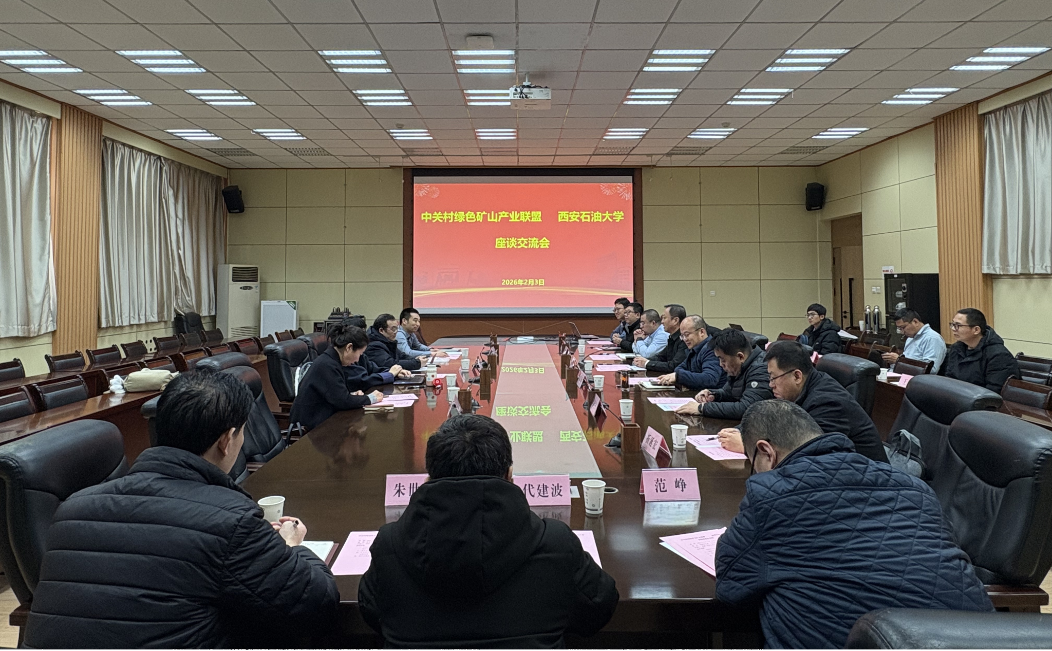 2月3日上午,中關村綠色礦山產業(yè)聯(lián)盟(以下簡稱“中綠盟”)副理事長兼秘書長王亮一行來校交流訪問,座談會在雁塔校區(qū)第一會議室舉行。校黨委委員、副校長張榮軍出席會議并講話。會議由科研處處長、研究生院院長高輝主持。