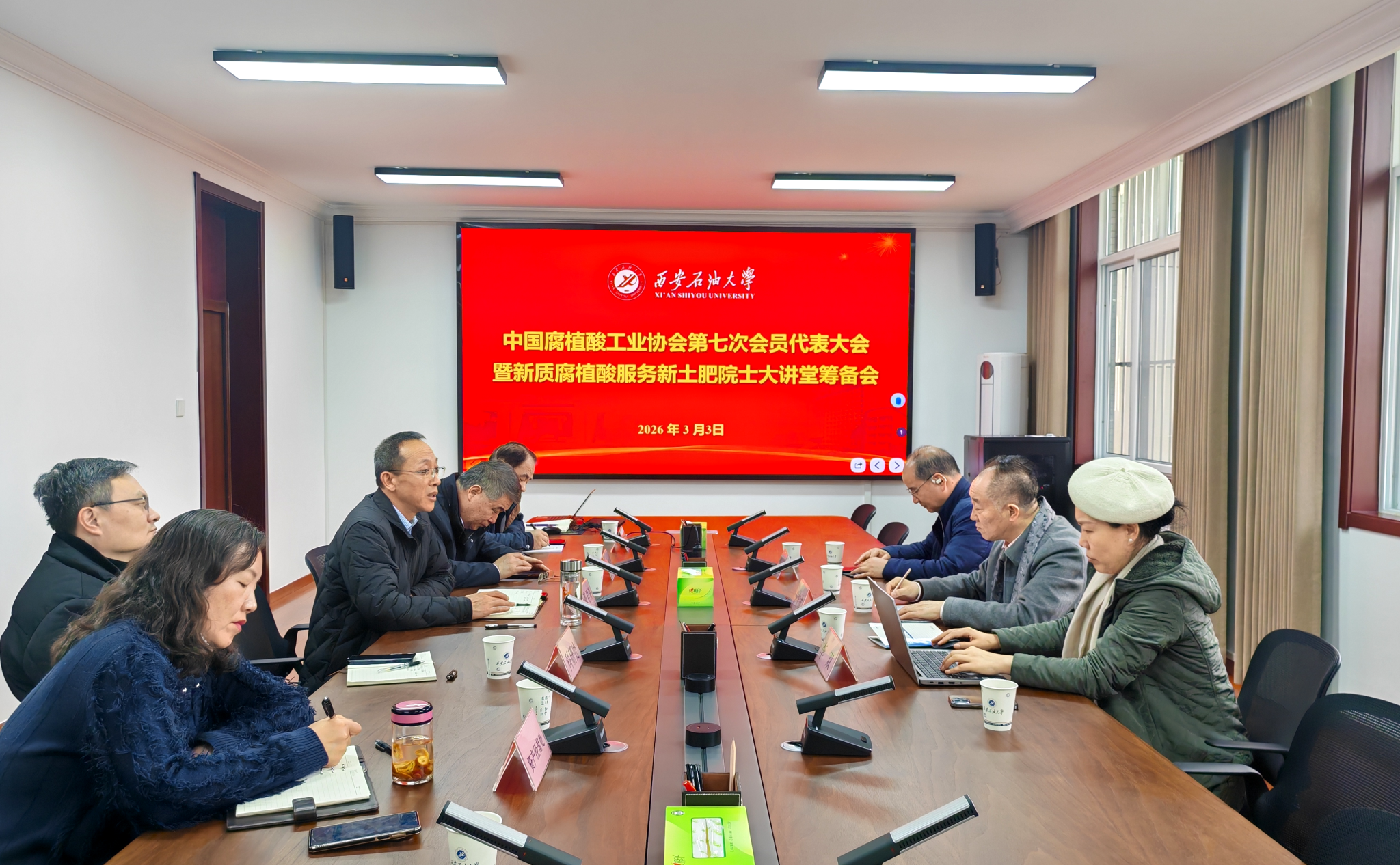 3月3日下午,中國腐植酸工業協會會長曾憲成、協會辦公室主任李榮、秘書李雙一行蒞臨我校,就“中國腐植酸工業協會第七次會員代表大會暨新質腐植酸服務新土肥院士大講堂”籌備工作與我校進行深入溝通協商。會議在鄠邑校區第四會議室舉行,由副校長張君濤主持。