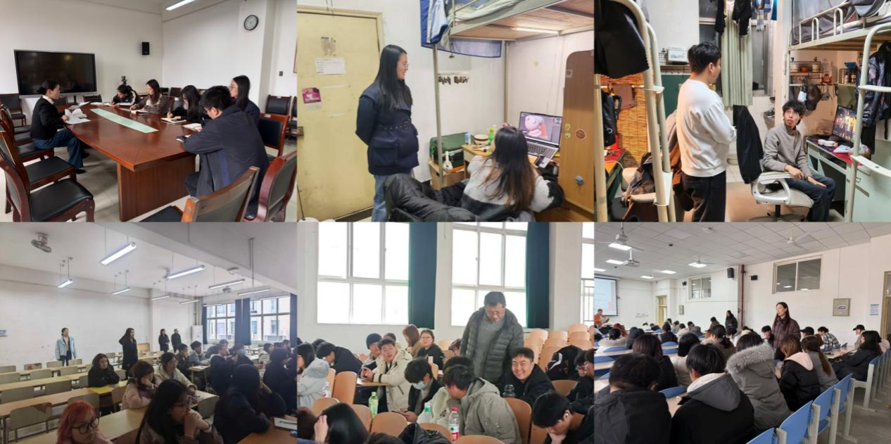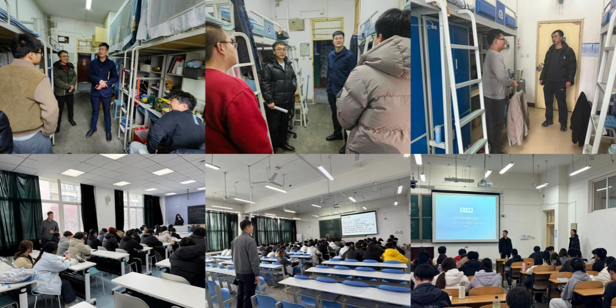 理學(xué)院于3月2日至5日開展全覆蓋走訪檢查工作,黨委書記席利哲、院長折延宏、黨委副書記楊富民帶領(lǐng)全體輔導(dǎo)員和部分班主任分批次深入學(xué)生宿舍,了解返校適應(yīng)和學(xué)習(xí)生活需求,圍繞專業(yè)認(rèn)知、職業(yè)規(guī)劃交流座談,收集意見建議并現(xiàn)場解答困惑。院領(lǐng)導(dǎo)帶隊深入課堂,察學(xué)情、訪狀態(tài),實現(xiàn)首周全部課程檢查全覆蓋。學(xué)院還以班會和年級大會形式為全體本科生開展“開學(xué)第一課”,引導(dǎo)學(xué)生端正學(xué)習(xí)態(tài)度、加強學(xué)風(fēng)建設(shè),重點強調(diào)預(yù)防電信詐騙、加強網(wǎng)絡(luò)文明教育,守護校園安全穩(wěn)定。