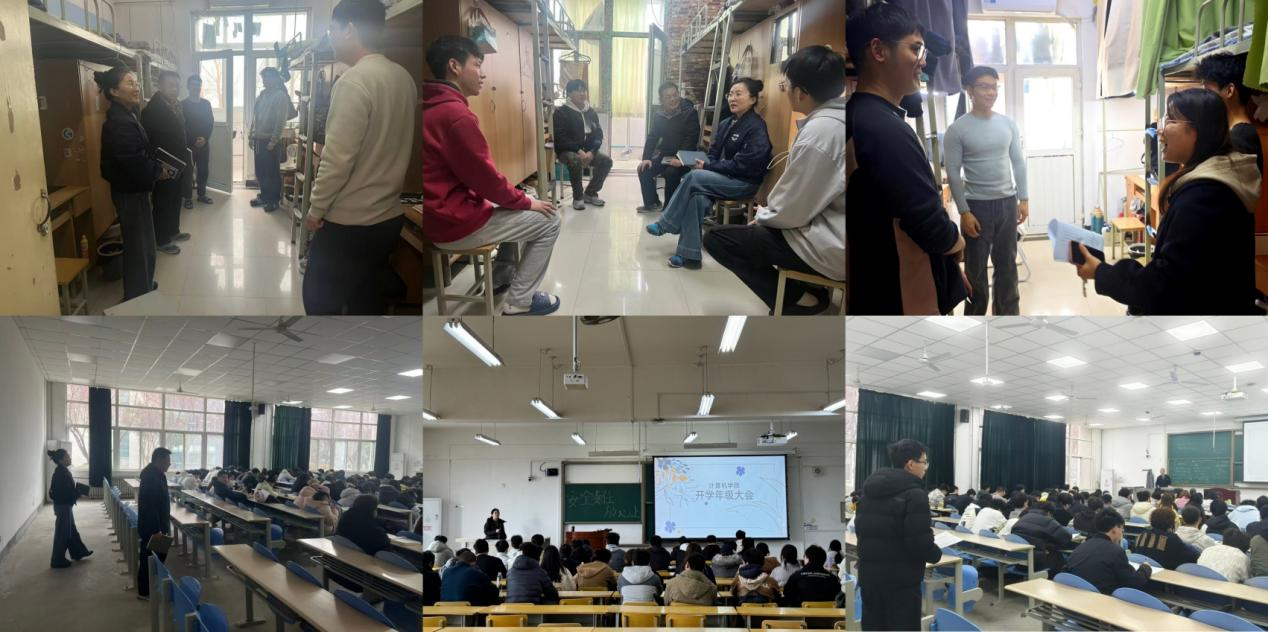 計算機學(xué)院多措并舉筑牢新學(xué)期學(xué)生管理根基,學(xué)院領(lǐng)導(dǎo)班子率先深入宿舍慰問學(xué)生、排查安全隱患,走進課堂聽課查課,累計檢查宿舍36間、查課25次;全體輔導(dǎo)員、班主任全面覆蓋學(xué)生宿舍與課堂,累計檢查宿舍503間、查課89次。各年級召開年級大會、各班召開主題班會,圍繞安全穩(wěn)定、傳染病預(yù)防、早操晚自習(xí)、電動車安全、防電信詐騙等內(nèi)容開展宣講。學(xué)院同步開展學(xué)業(yè)警示教育,摸排重點關(guān)注學(xué)生情況,扎實推進就業(yè)促進與引導(dǎo),開展精細(xì)化就業(yè)指導(dǎo),全方位覆蓋學(xué)生學(xué)習(xí)生活各環(huán)節(jié)。