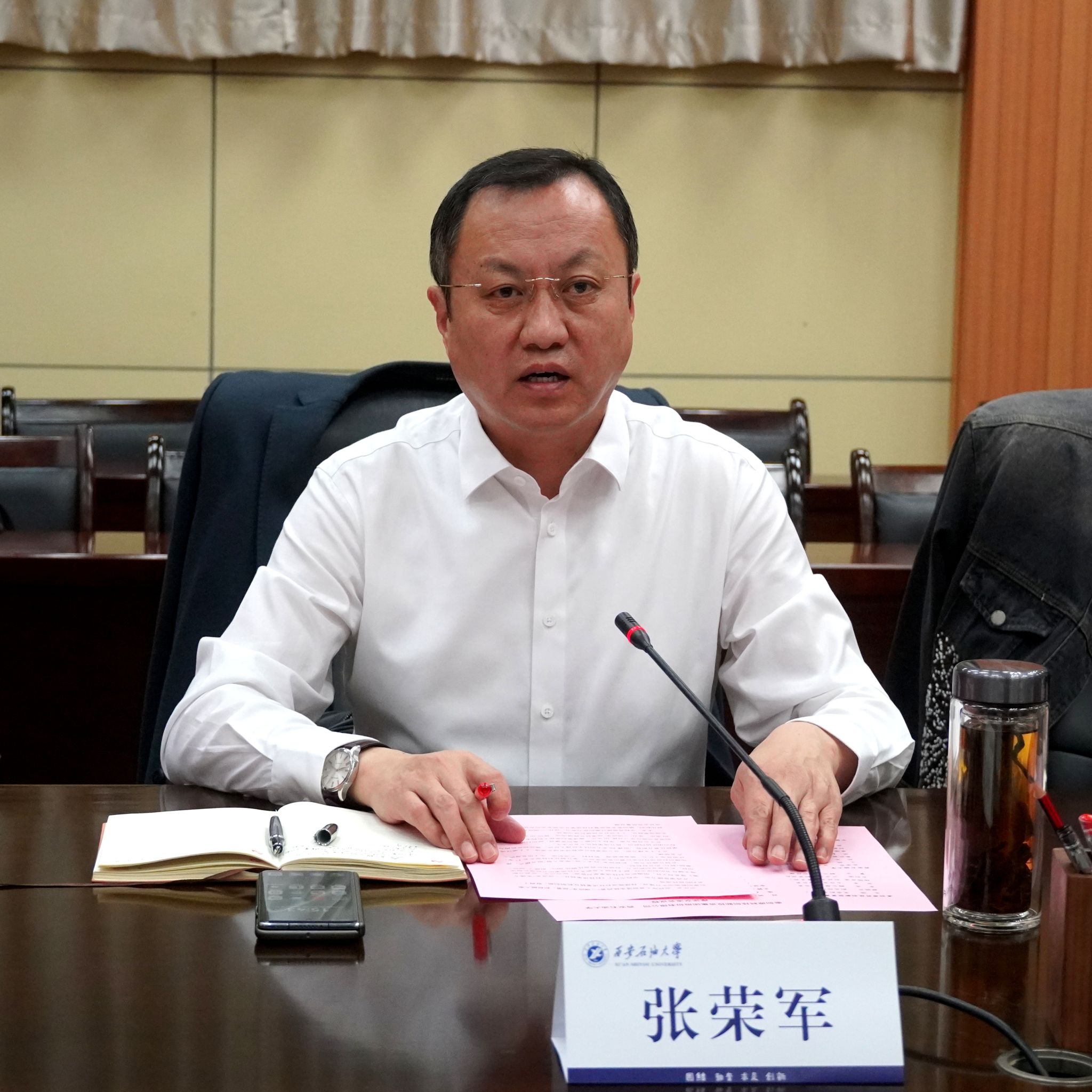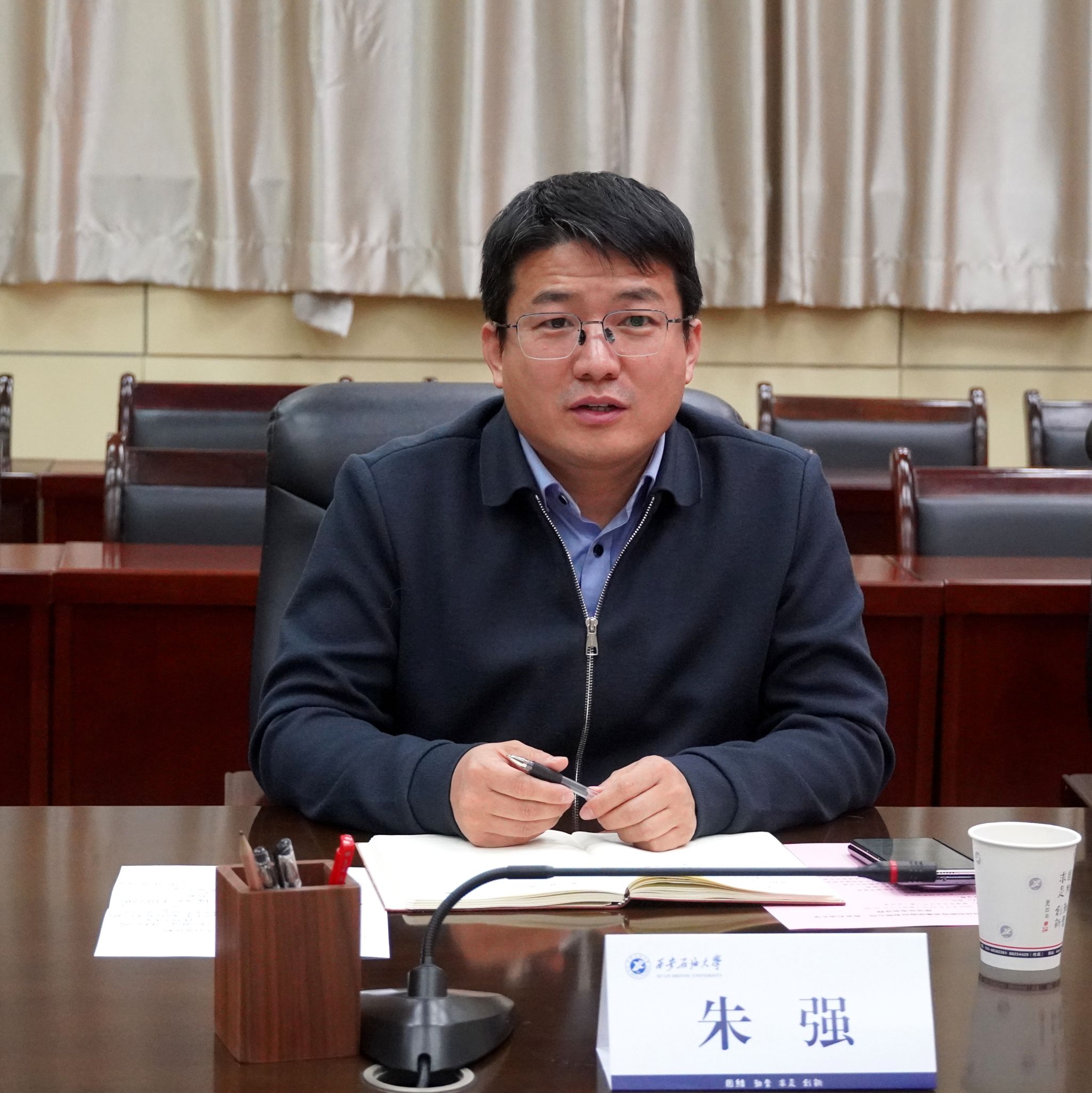 張榮軍對朱強一行到訪交流表示熱烈歡迎,并簡要介紹了學(xué)校優(yōu)勢特色學(xué)科以及科研成果等情況。他指出,學(xué)校始終以服務(wù)國家能源戰(zhàn)略和區(qū)域經(jīng)濟發(fā)展為己任,近年來在科技創(chuàng)新、成果轉(zhuǎn)化等方面取得顯著成效,希望通過此次交流,進一步深化與秦創(chuàng)投集團的合作,推動更多科研成果落地轉(zhuǎn)化。
