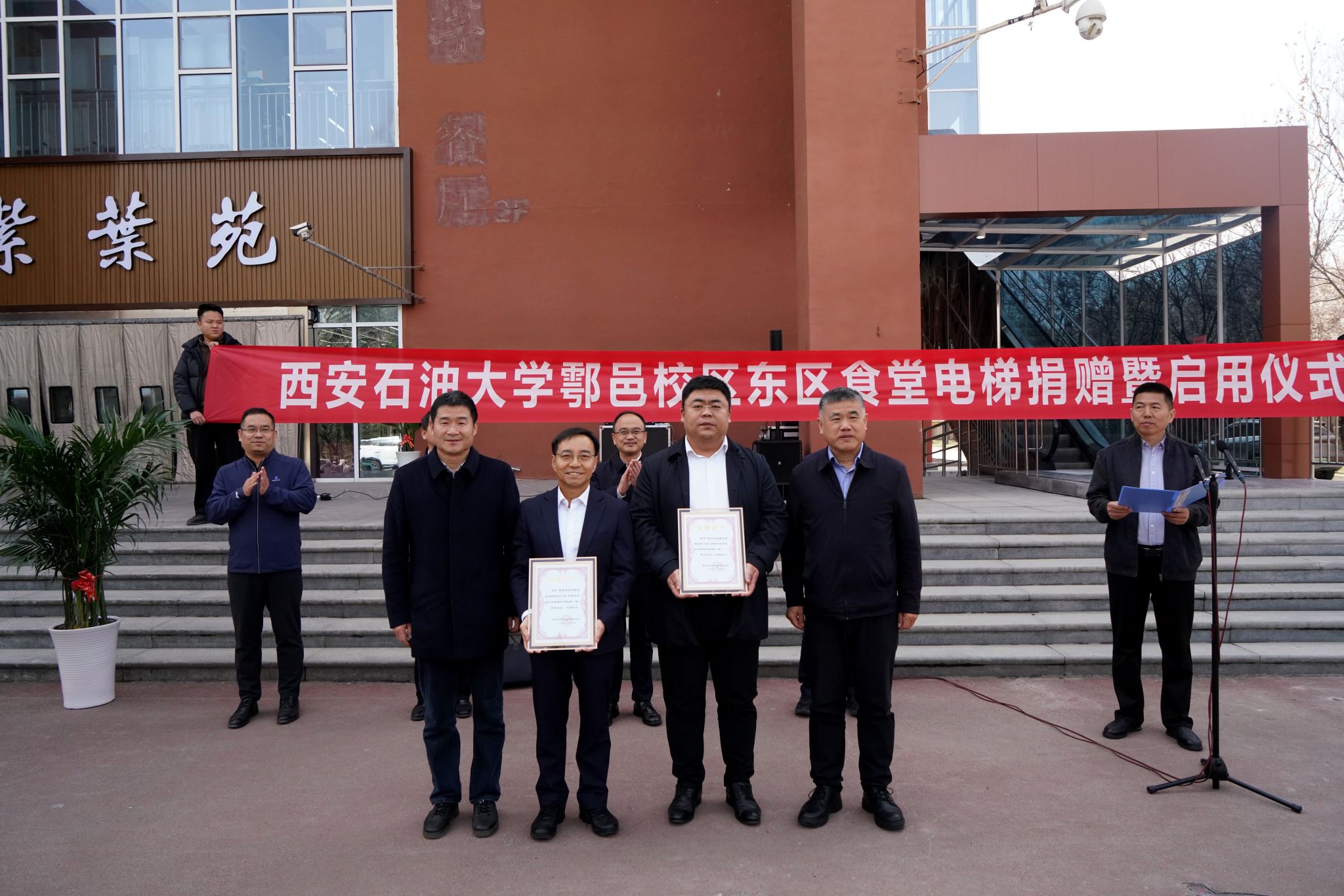 儀式上,建設(shè)單位向?qū)W校國(guó)有資產(chǎn)處處長(zhǎng)李國(guó)柱移交了電梯技術(shù)資料,校友工作與合作交流處處長(zhǎng)覃彪、后勤黨總支書記王鈞向兩家愛心企業(yè)頒發(fā)了捐贈(zèng)證書。后勤處處長(zhǎng)楚良海對(duì)企業(yè)的善舉致以謝意,表示電梯啟用是完善校園無障礙設(shè)施、提升后勤服務(wù)品質(zhì)的務(wù)實(shí)舉措,也是“幸福西石大”建設(shè)的生動(dòng)成果。