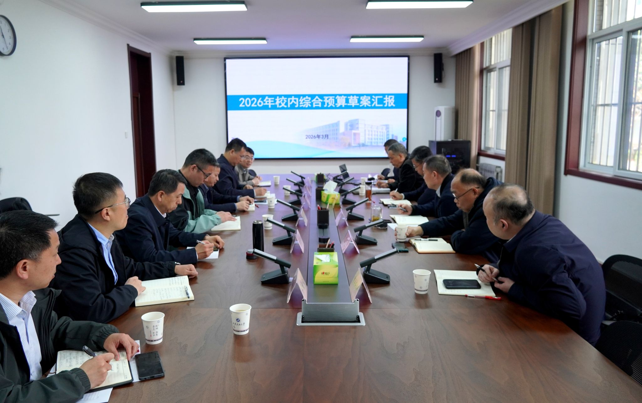 財務處負責人匯報了2025年度財務決算報告和2026年度校內綜合預算(草案),就學校2026年度預算編制的依據(jù)及原則、預算收入和預算支出安排建議進行了說明。財經(jīng)工作委員會各位成員分別對2026年度校內綜合預算(草案)進行了討論。