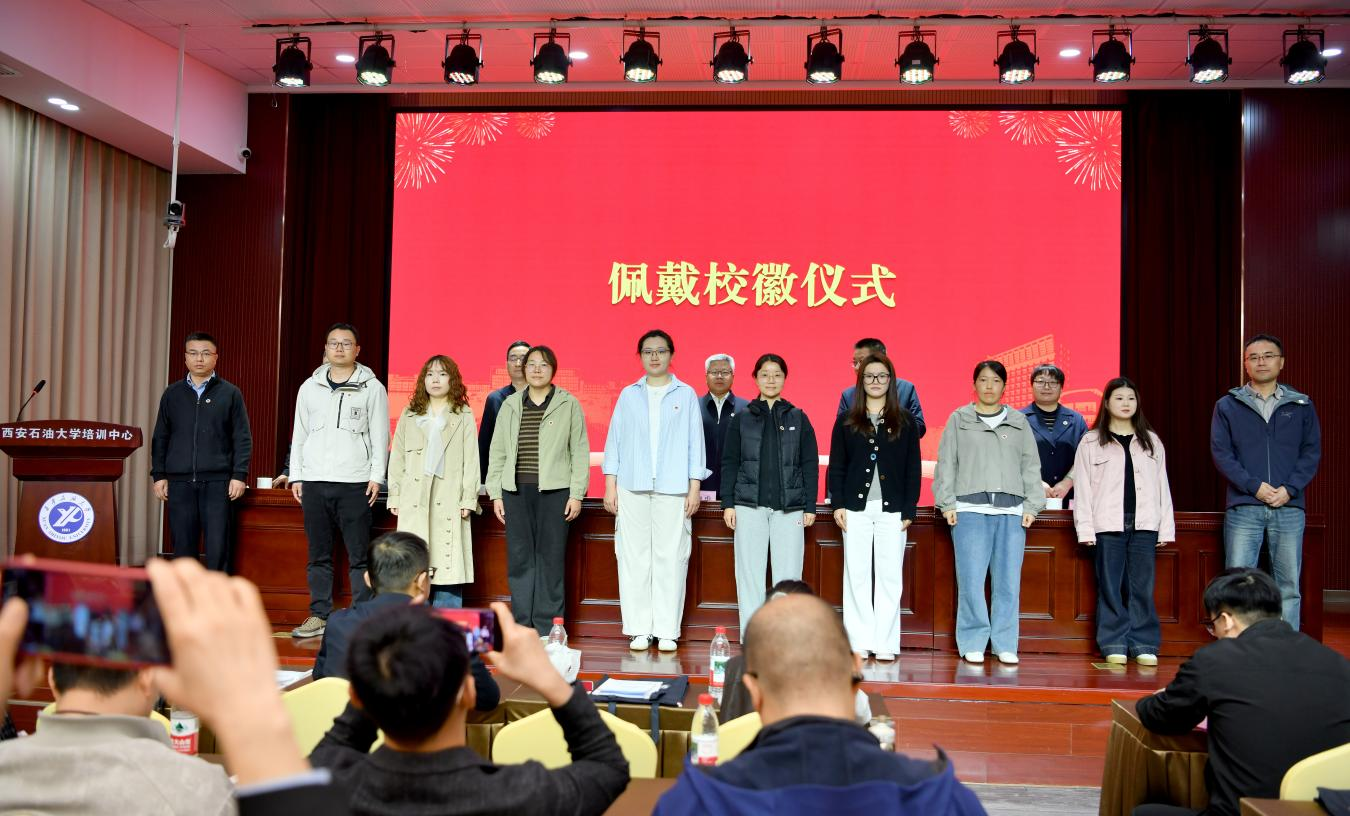 隨后,與會(huì)領(lǐng)導(dǎo)和嘉賓為新生代表頒發(fā)并佩戴?;?。