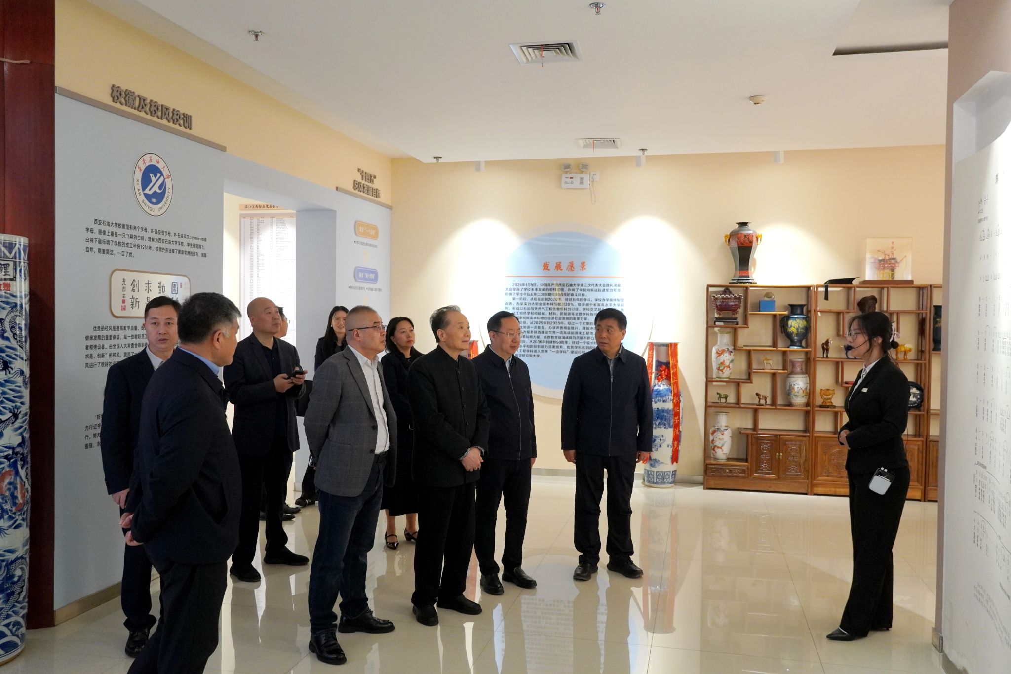 會(huì)前,劉浩春一行在種宇宏陪同下,參觀了學(xué)校鐵人王進(jìn)喜紀(jì)念館與校史館,實(shí)地感受學(xué)校的辦學(xué)底蘊(yùn)、文化建設(shè)成果與鐵人精神育人氛圍。