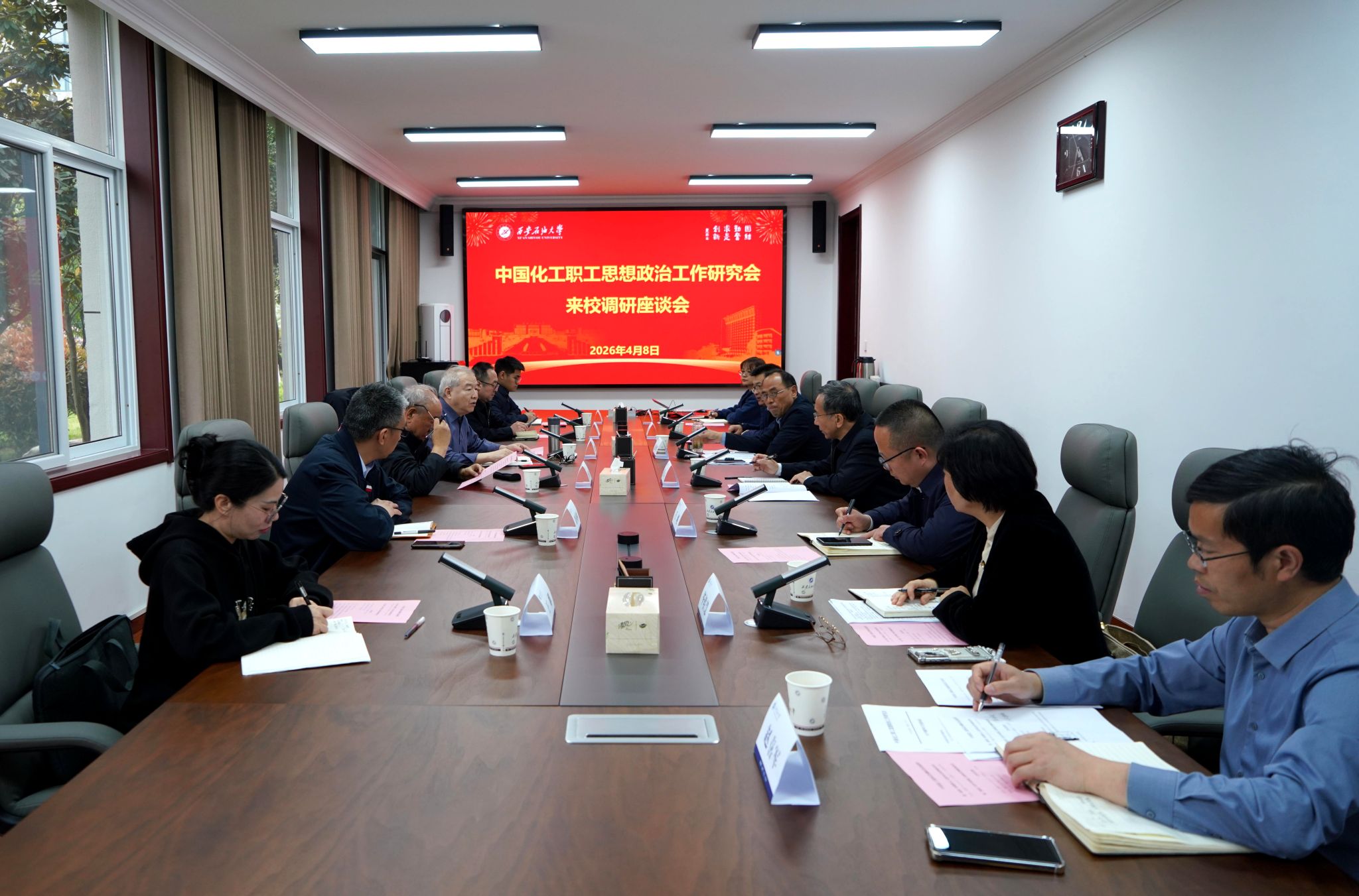 中國(guó)化工政研會(huì)駐會(huì)副會(huì)長(zhǎng)兼秘書長(zhǎng)、思想政治工作專家委員會(huì)主任崔建華介紹了中國(guó)化工政研會(huì)基本情況及調(diào)研內(nèi)容。校黨委委員、宣傳部部長(zhǎng)趙承勝匯報(bào)了學(xué)校宣傳思想文化工作的主要做法與實(shí)際成效。與會(huì)雙方圍繞宣傳思想文化工作、校會(huì)聯(lián)動(dòng)合作等進(jìn)行了探討交流。