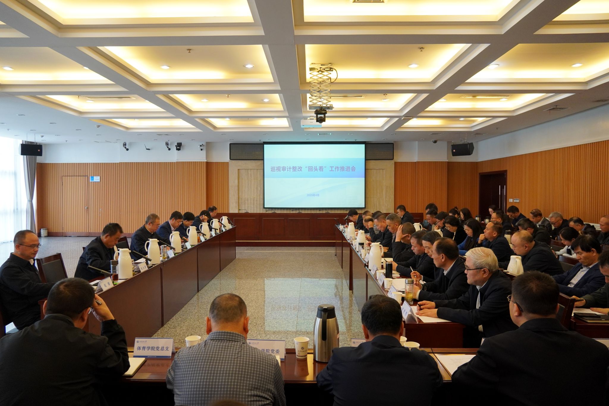 會上,審計處主要負責人通報了學校巡視審計問題整改未完成情況,相關(guān)部門主要負責人匯報了重點問題的整改進展情況。