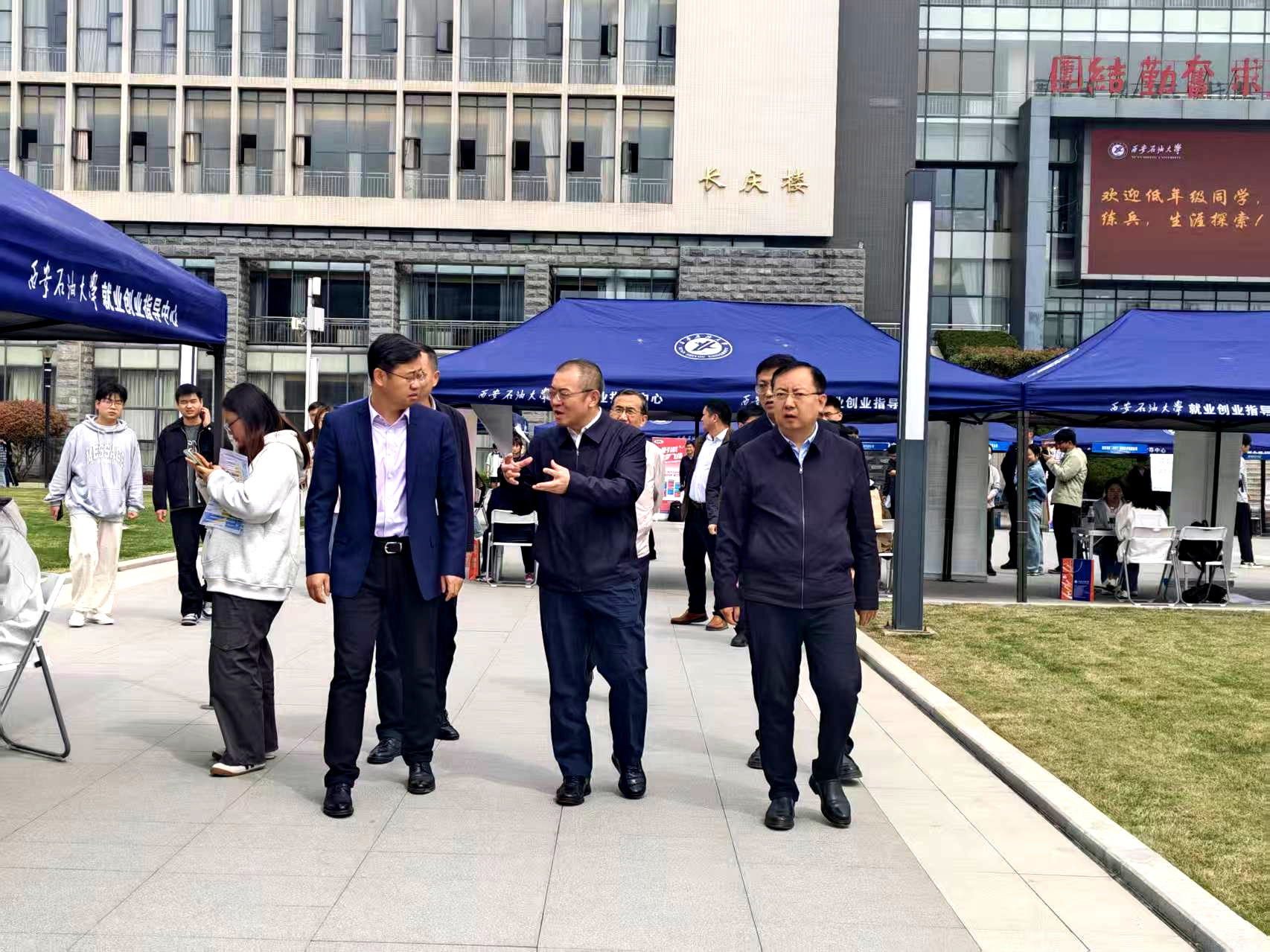 為深入貫徹落實(shí)黨中央、國務(wù)院及陜西省關(guān)于高校畢業(yè)生就業(yè)工作的決策部署,扎實(shí)推進(jìn)2026屆畢業(yè)生高質(zhì)量充分就業(yè),創(chuàng)新構(gòu)建“招聘+探索+育人”一體化服務(wù)體系,4月10日上午,我校在鄠邑校區(qū)初心廣場(chǎng)成功舉辦首屆“石大筑夢(mèng)·就業(yè)育人”2026年春季校園招聘會(huì)暨職業(yè)生涯體驗(yàn)活動(dòng)。校黨委書記常江、校長(zhǎng)王進(jìn)富、黨委副書記張木、副校長(zhǎng)種宇宏深入活動(dòng)現(xiàn)場(chǎng)指導(dǎo)調(diào)研。全校各年級(jí)1500余名學(xué)生參加活動(dòng)。