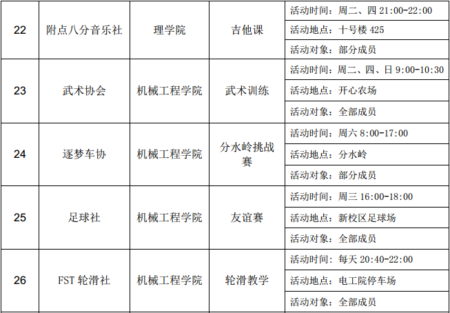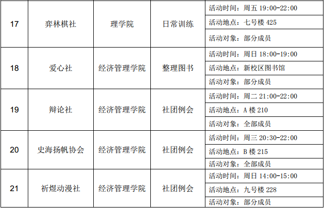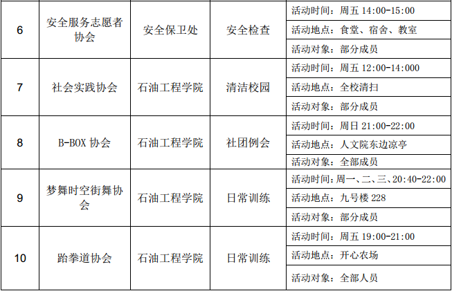 西安石油大學(xué)2016—2017學(xué)年第二學(xué)期第四周社團(tuán)活動一覽表